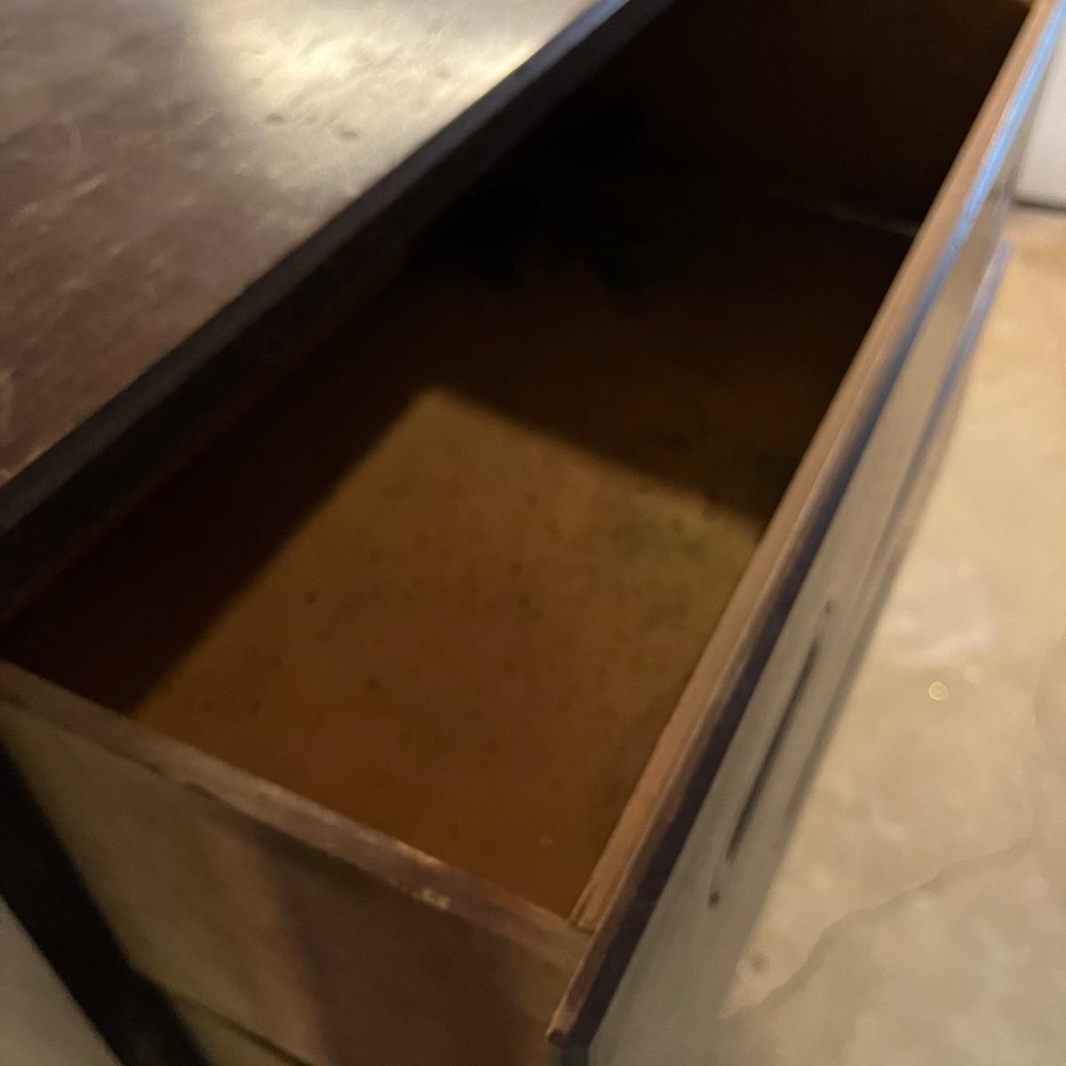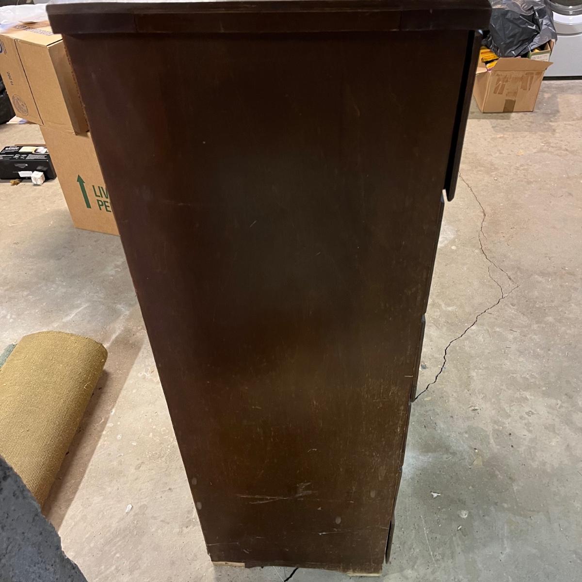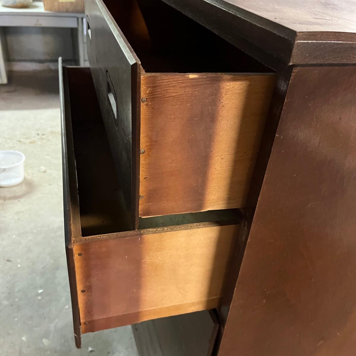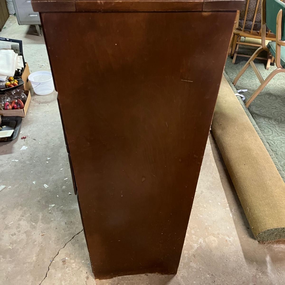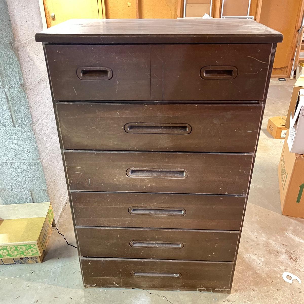 Lot includes a six drawer chest of drawers. Chest has some scratches, nicks and gouges, and a few drawer bottoms are loose; see pictures. Chest measures 16” x 30” x 48”.