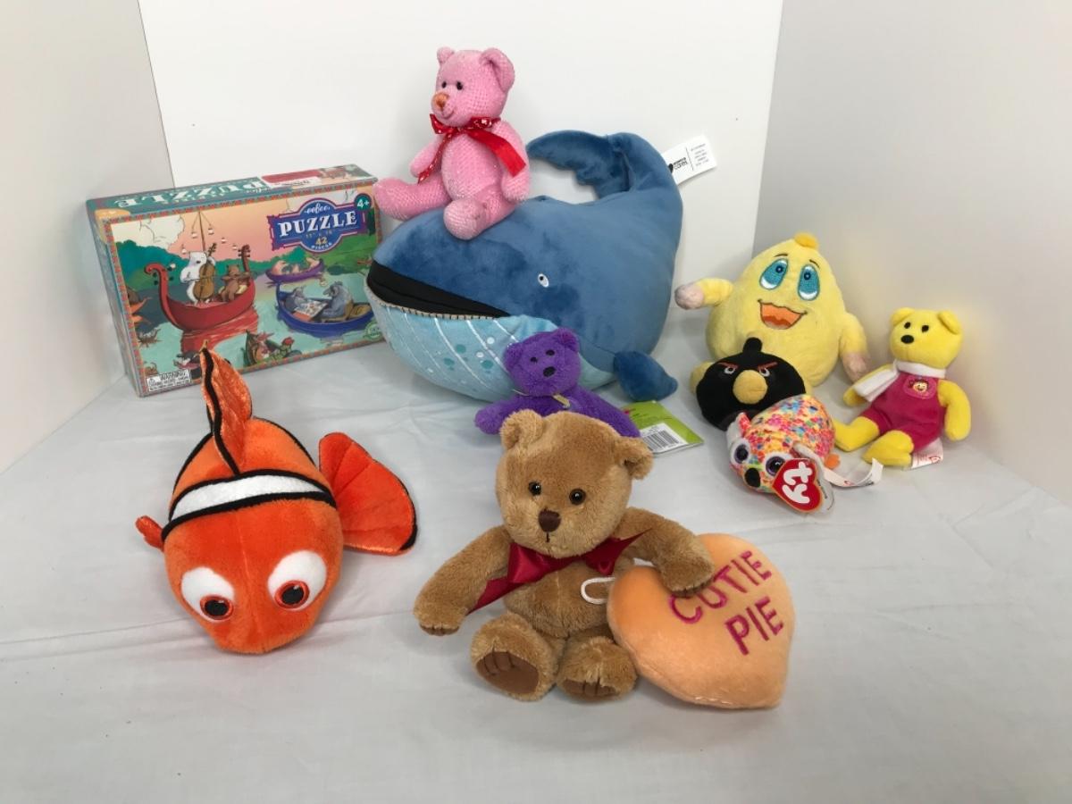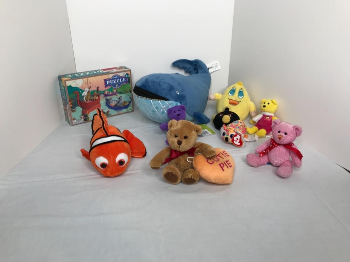 10 stuffed animals Ty, Disney Nemo, Whale, bears etc