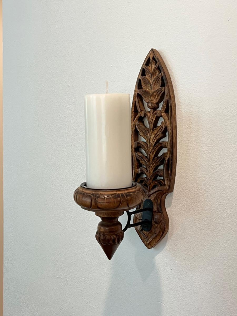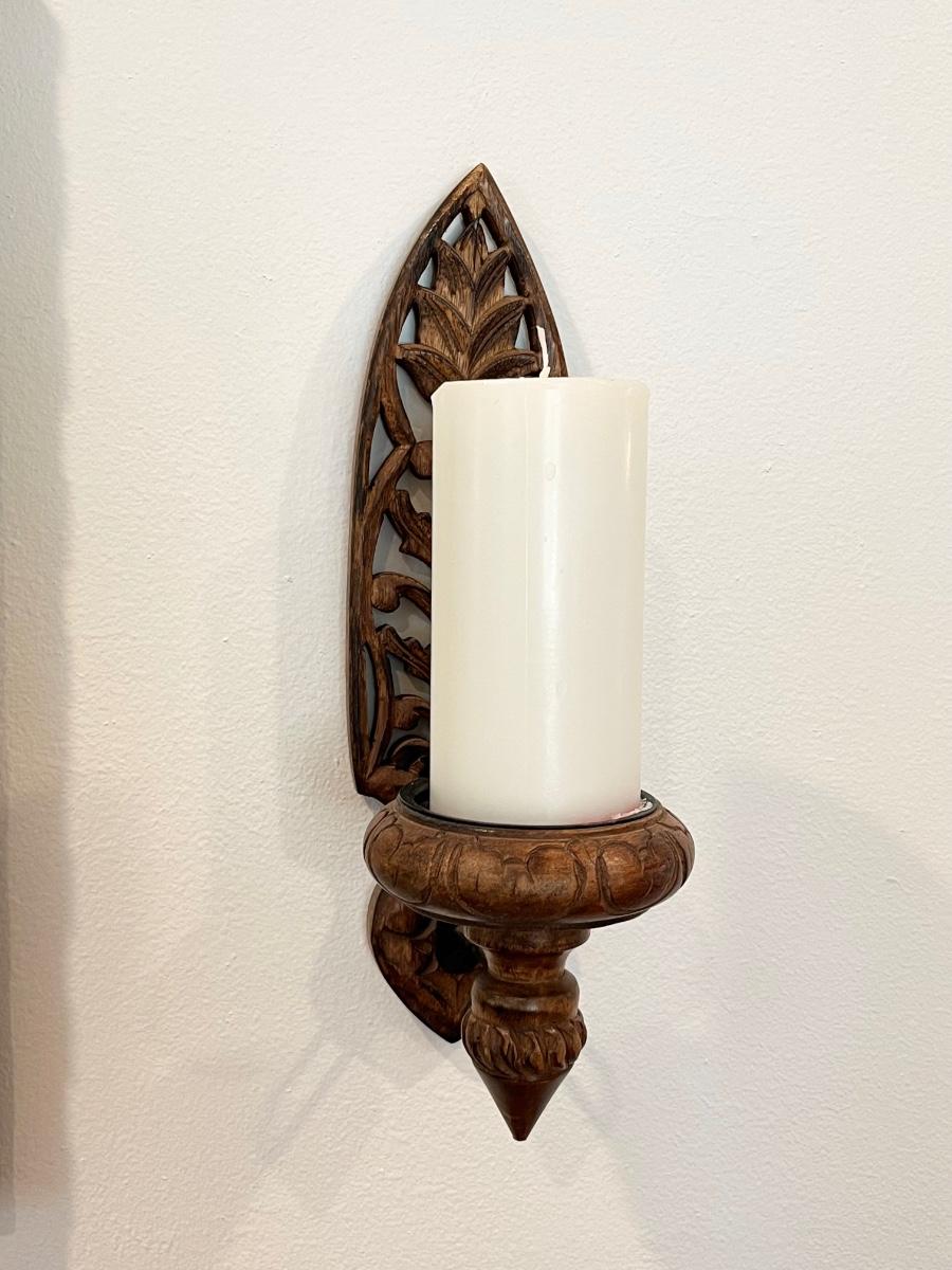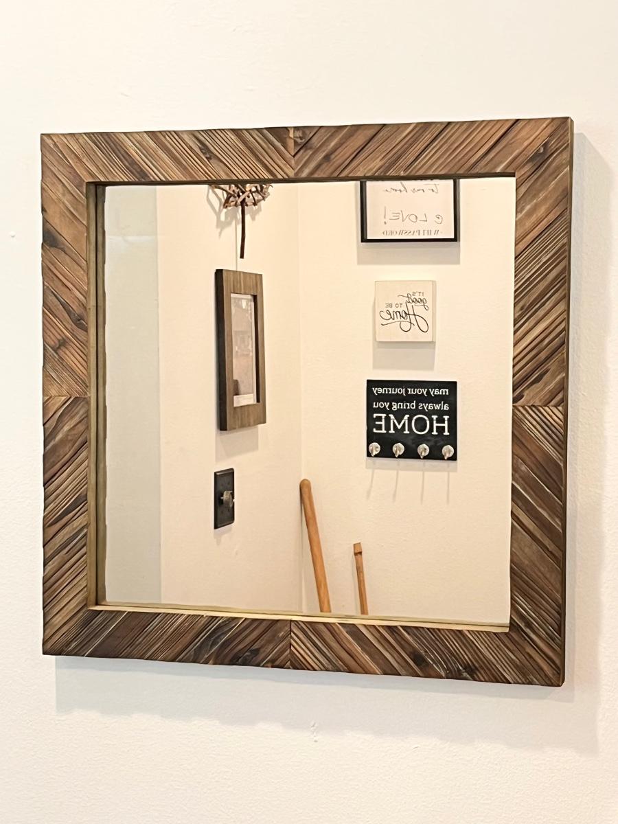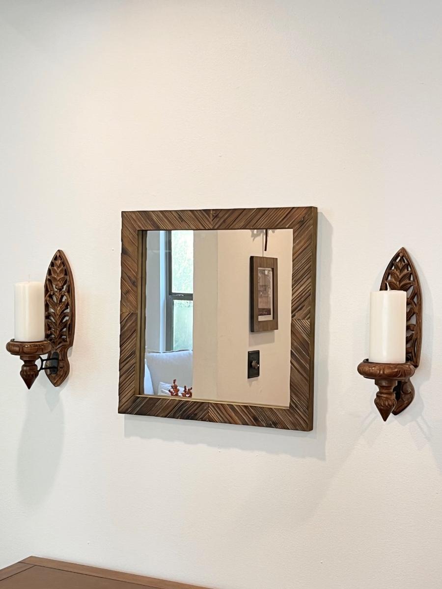 STONEBRIAR COLLECTION ~ Wooden Chevron Mirror ~ Pair (2) Wood Ornate Sconces