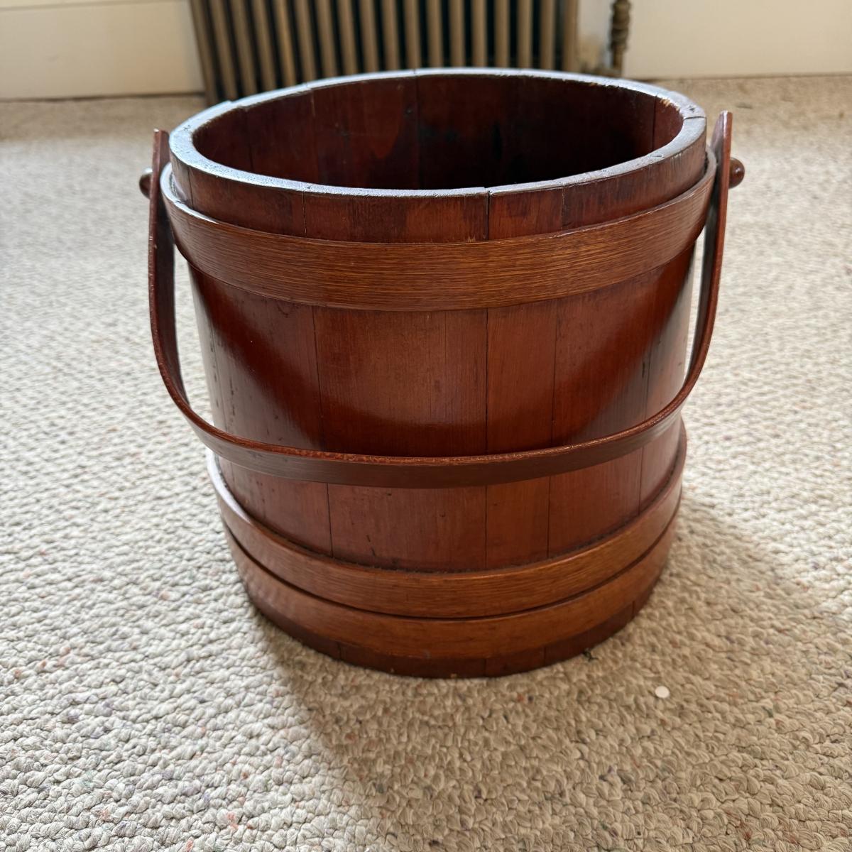 This lot contains a wooden churner bucket. This neat piece has a handle and measures 12”D x 16”H. Shipping available.
