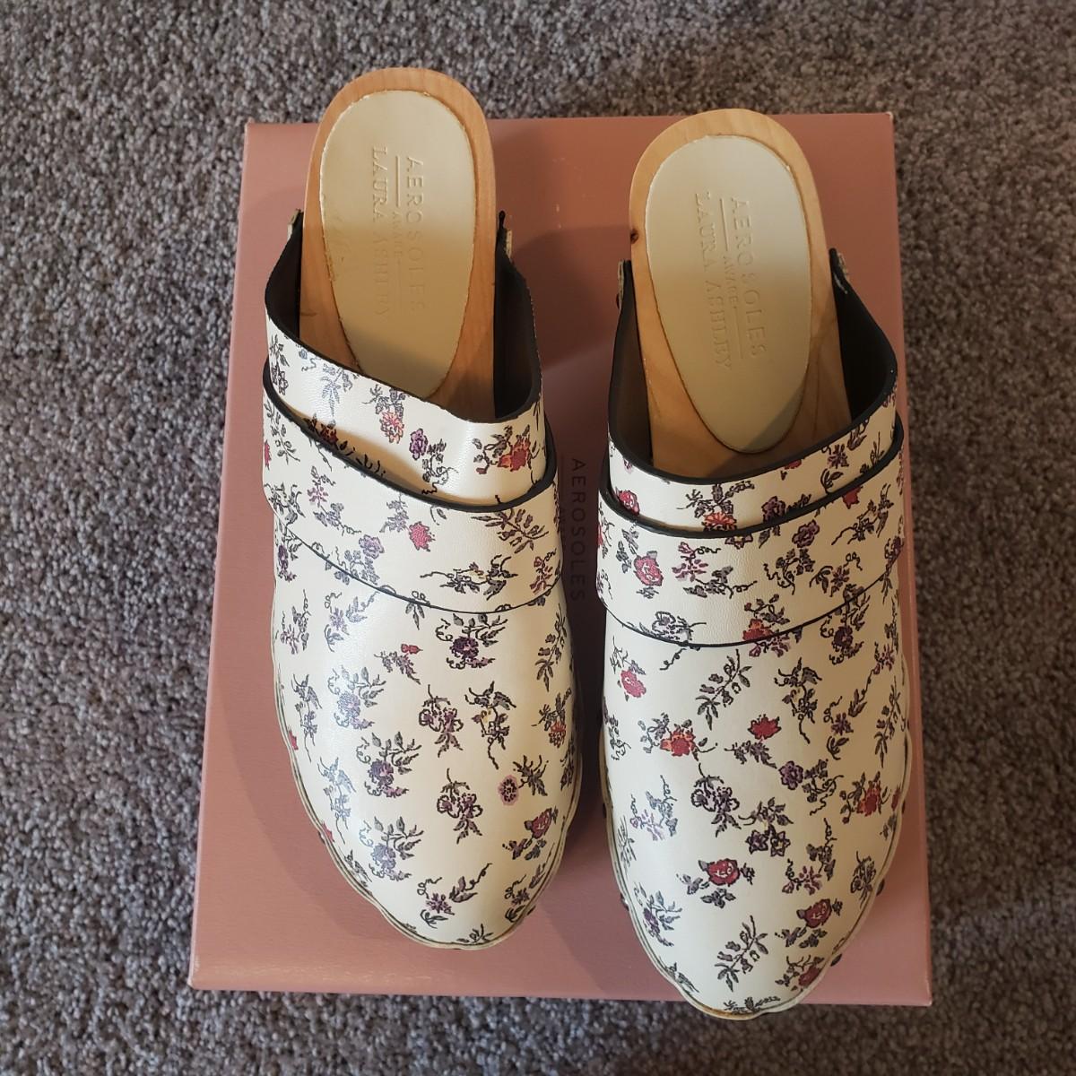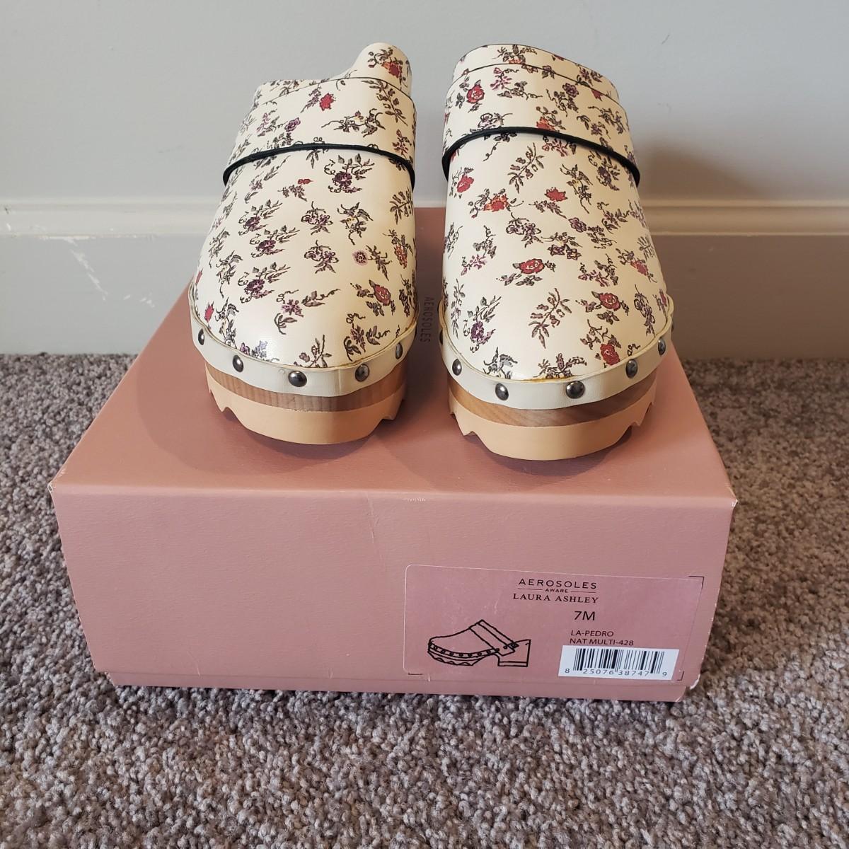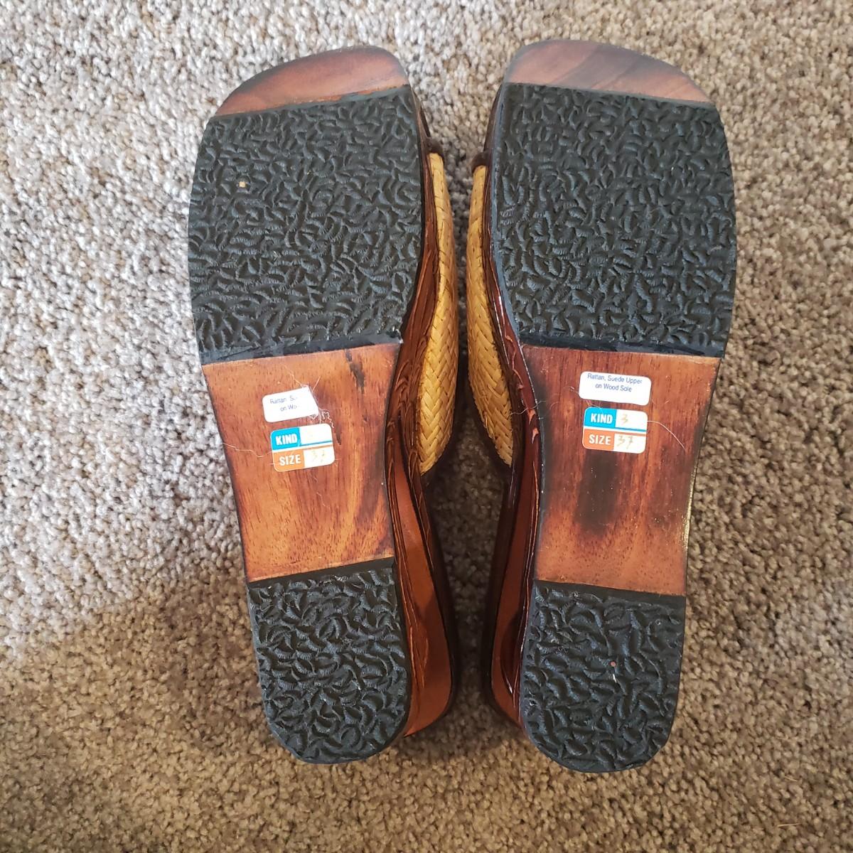This clog lot has six pairs of shoes. All pairs are size 7, except the blue Bass clogs, which are size 8. See pictures for condition and size for each pair.