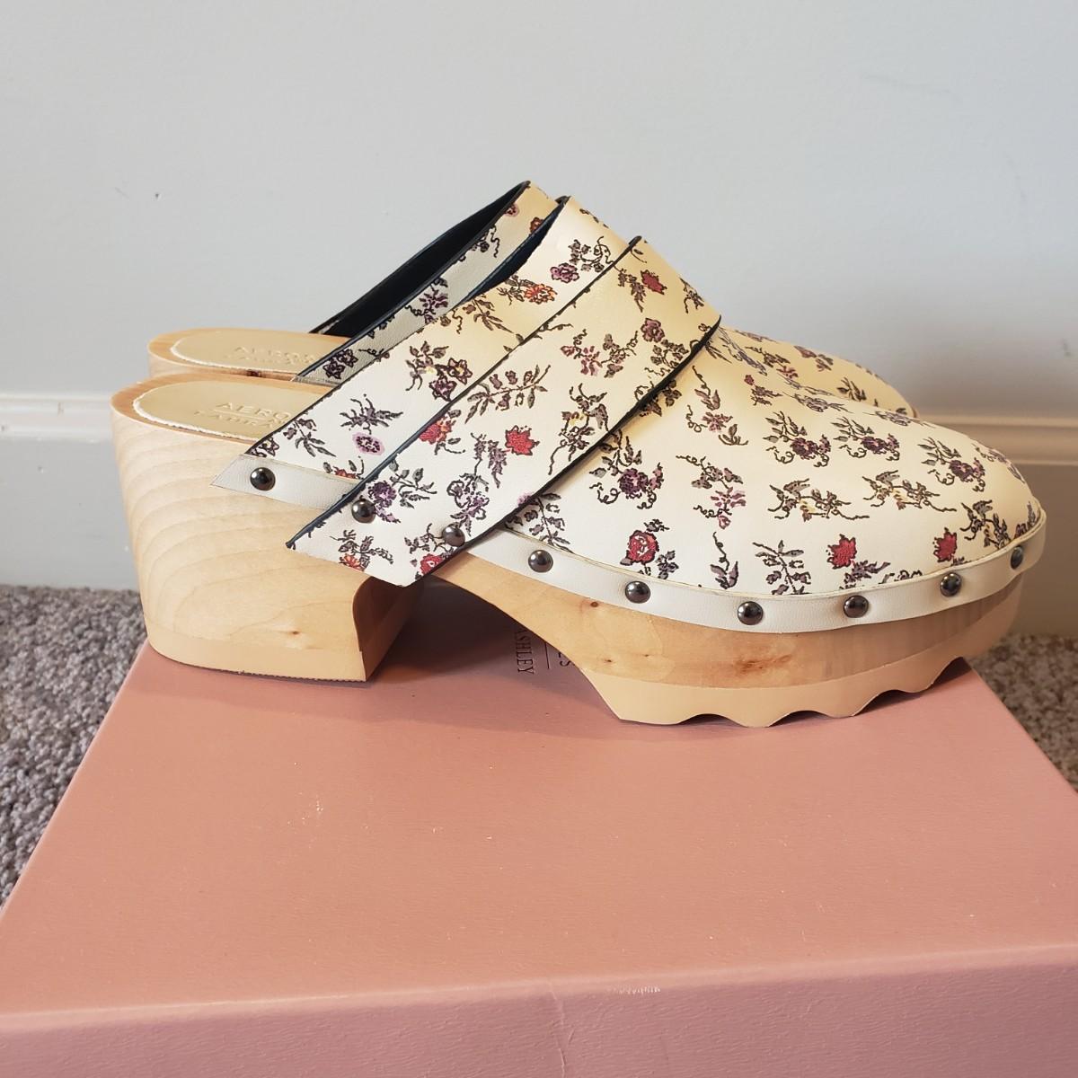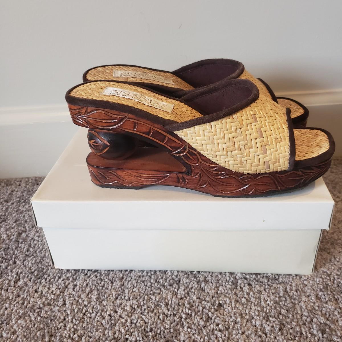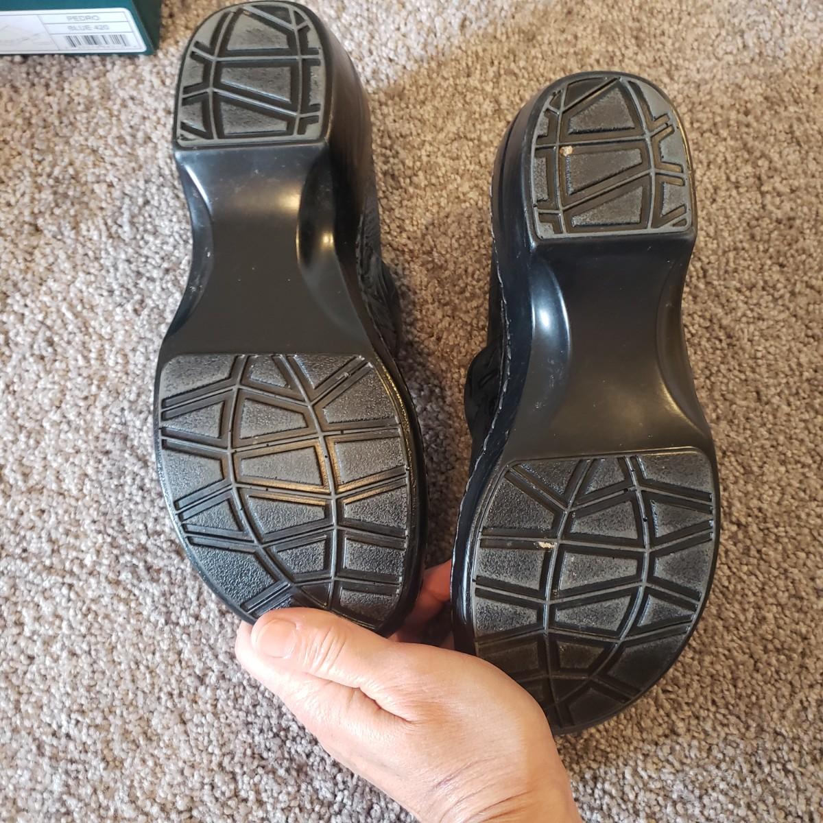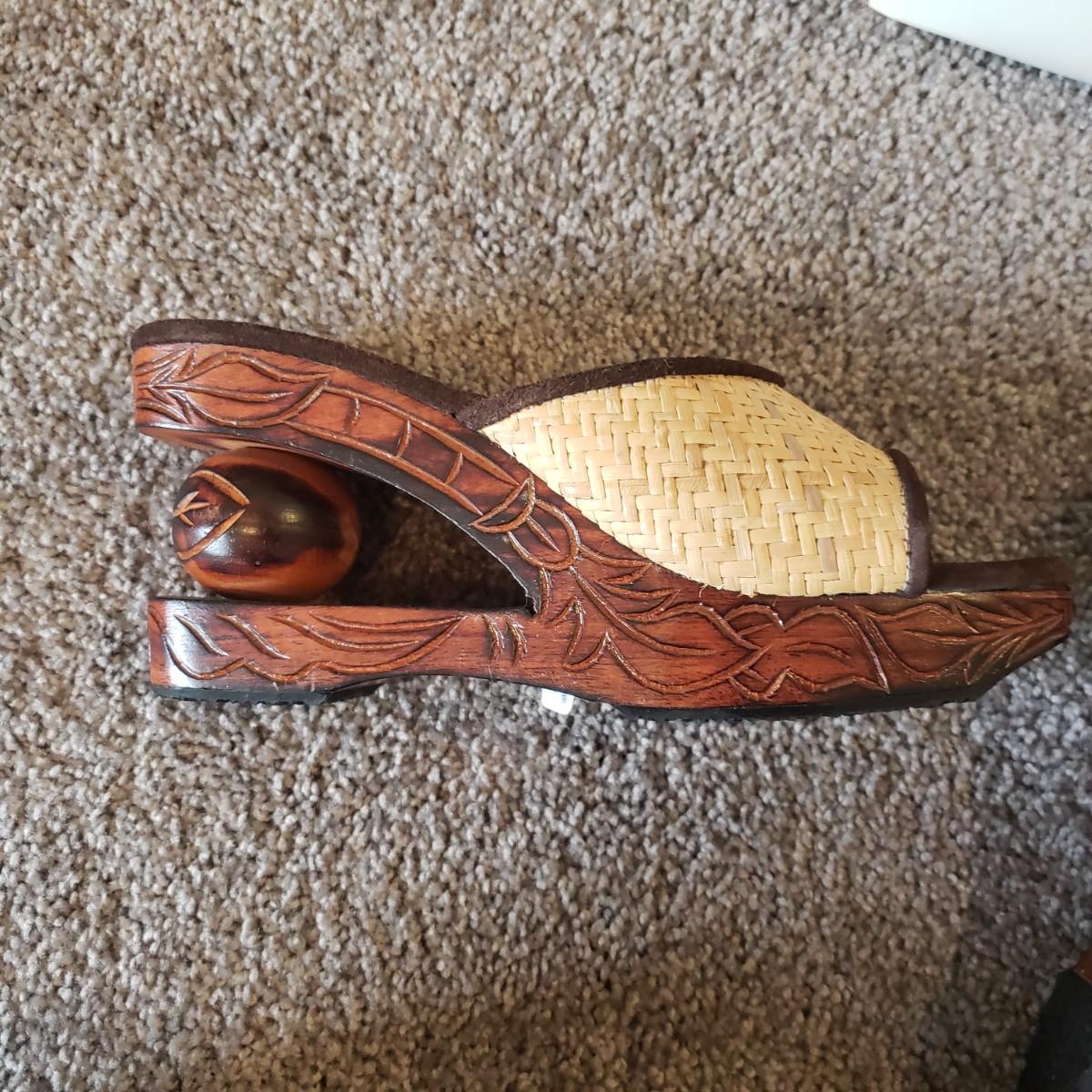 This clog lot has six pairs of shoes. All pairs are size 7, except the blue Bass clogs, which are size 8. See pictures for condition and size for each pair.