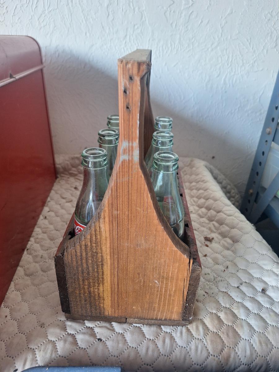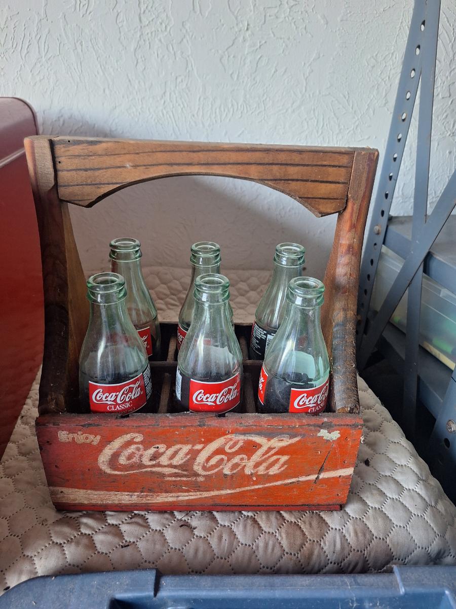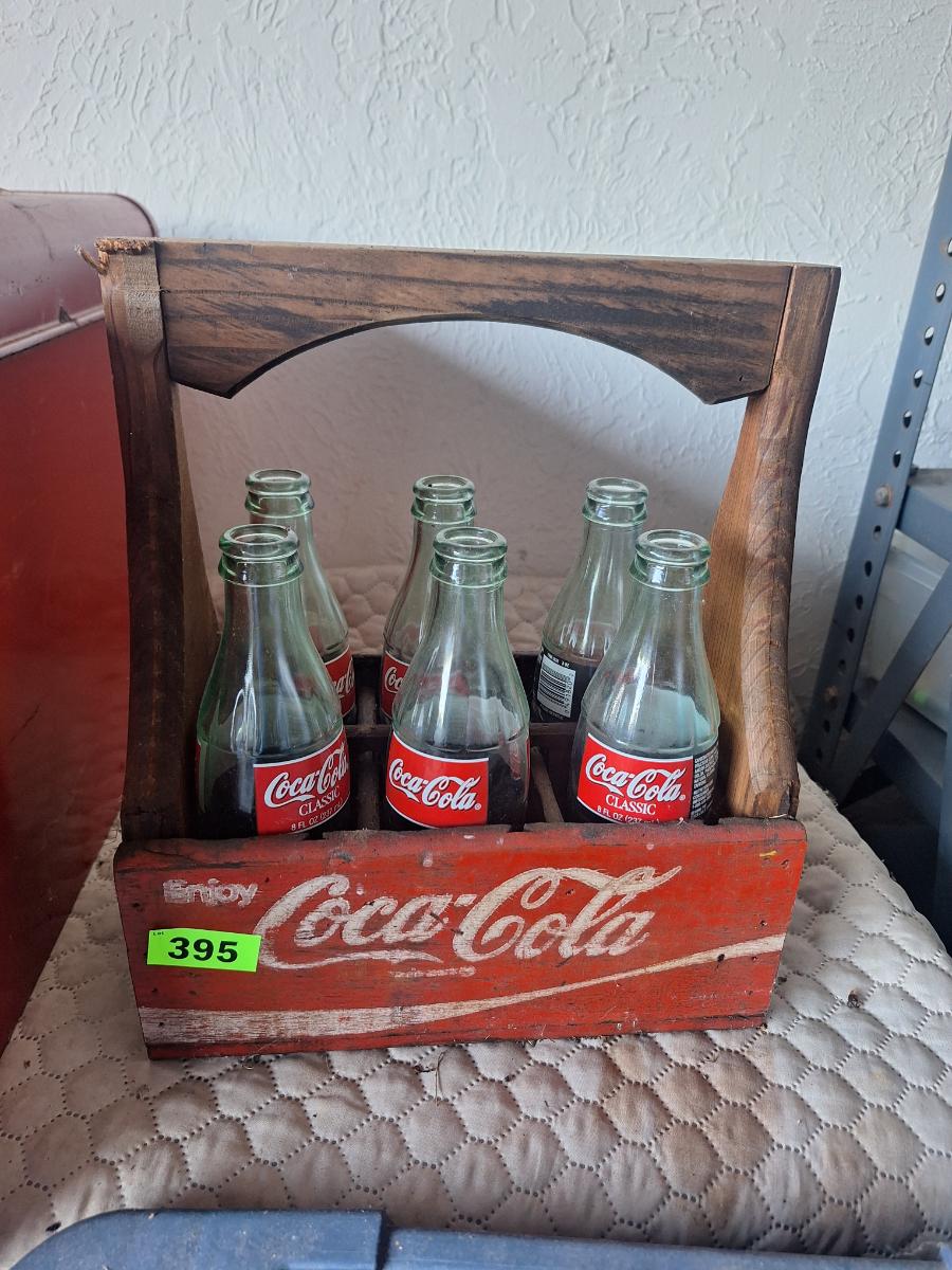 Wooden coca cola tray with glass bottles