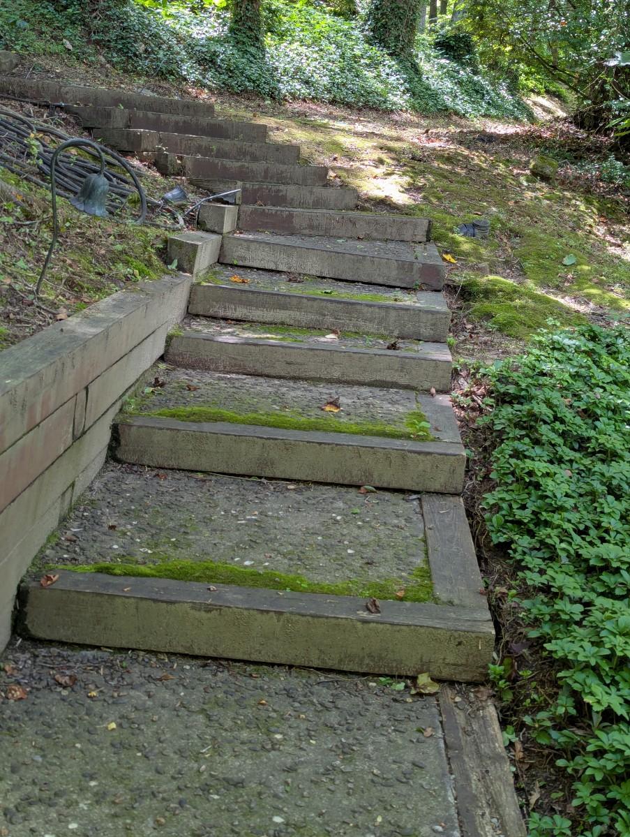 - It is down stairs there is a sliding door to go out at the back of the house and go up some stairs to the driveway