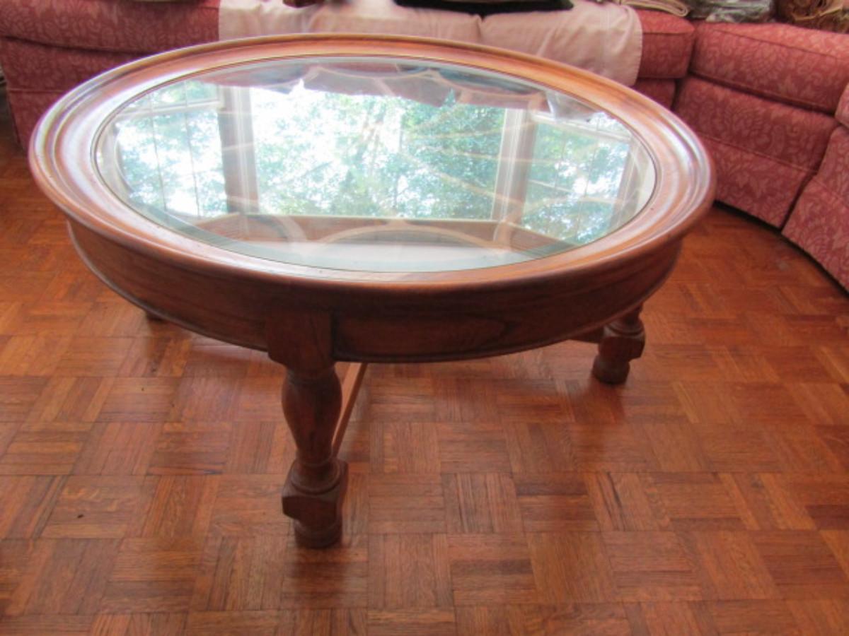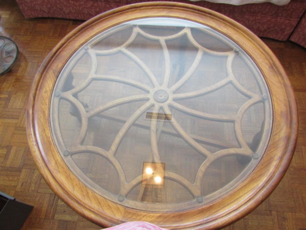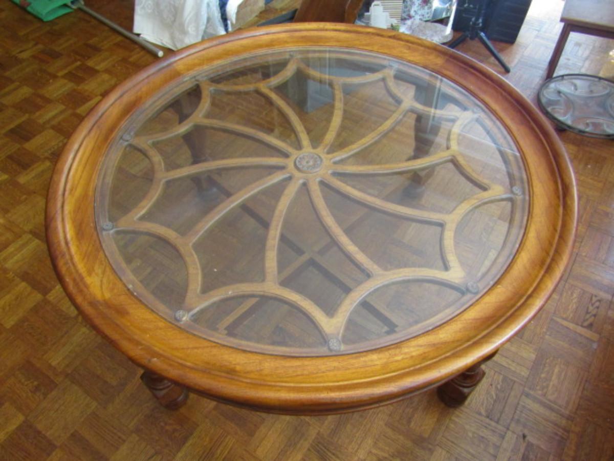 Wooden Coffee Table with Unique Fretting Design and Glass Top