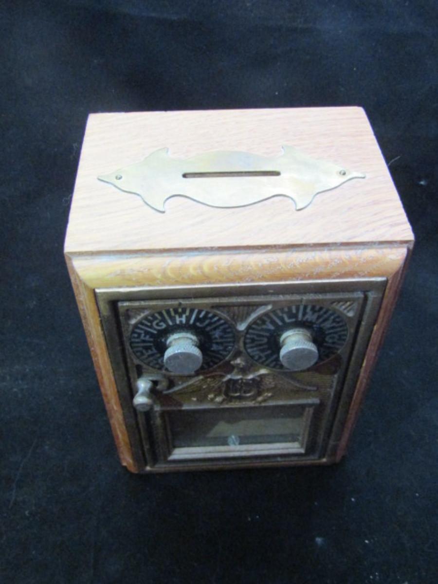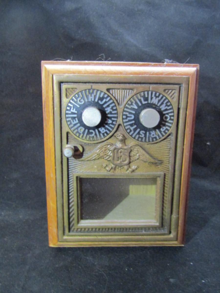 Wooden Coin Bank with Antique Post Office Box Door- Combination Included (C)