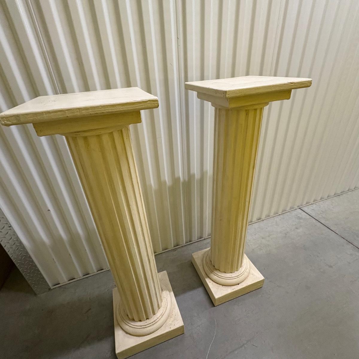 Two off-white wooden columns measure 12"SQ x 41.5” H.