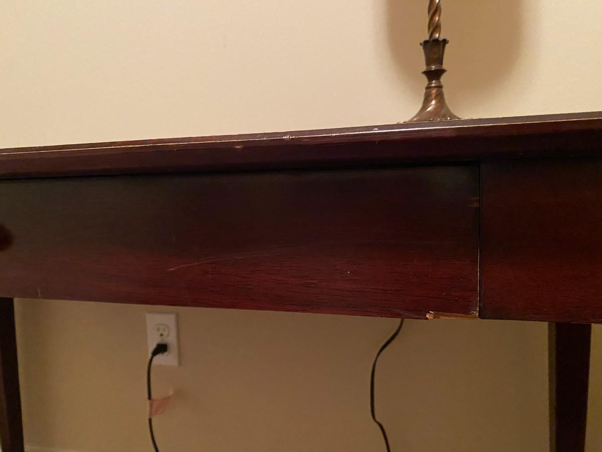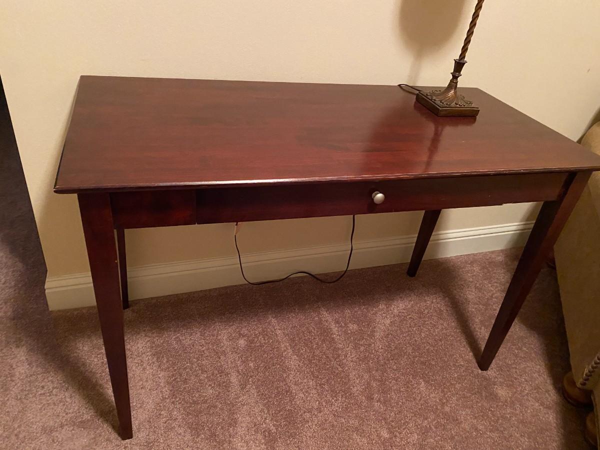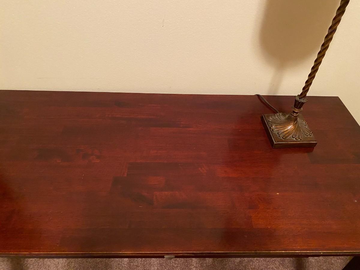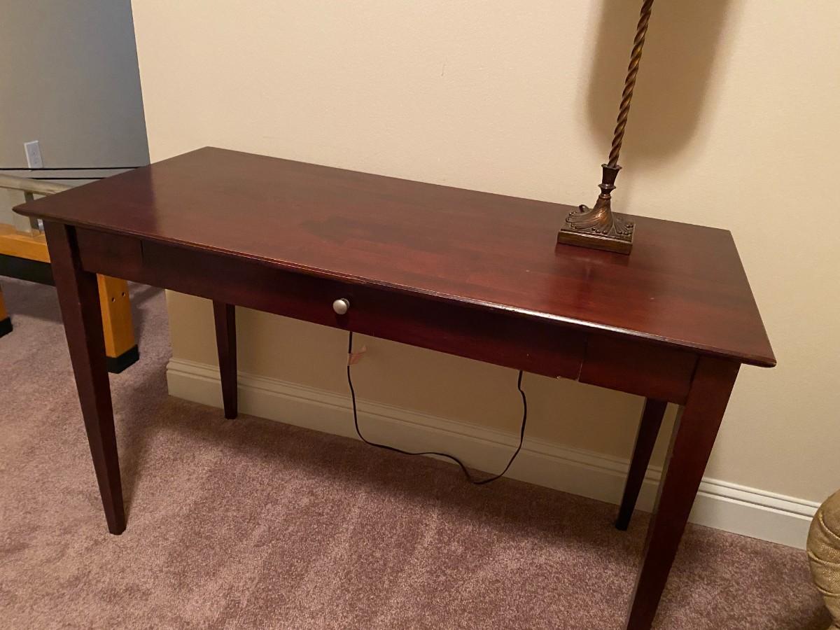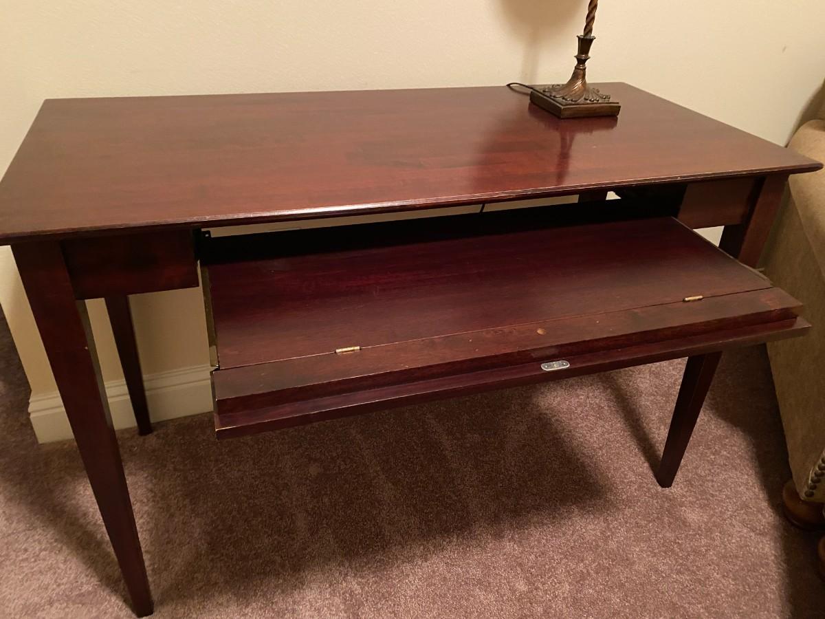 Wooden computer desk. A few scratches (see pics.), otherwise in good condition. Approx. 46" L x 22" W x 30" H