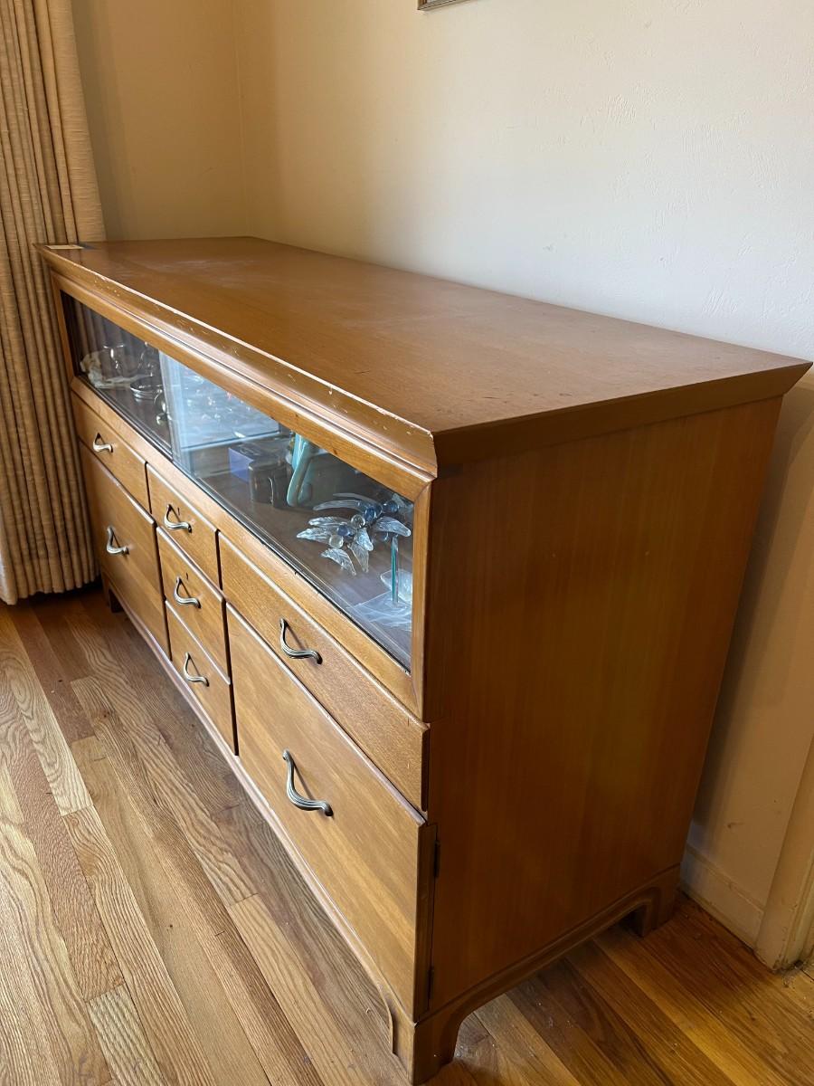 Wooden credenza measuring 62 x 21 x 36 made by Tomlinson Furniture. Content not included