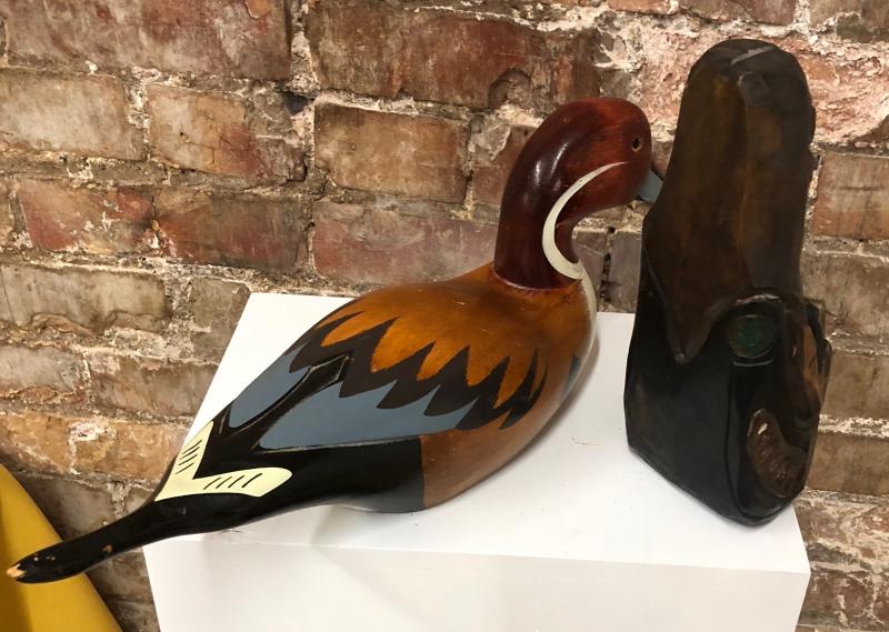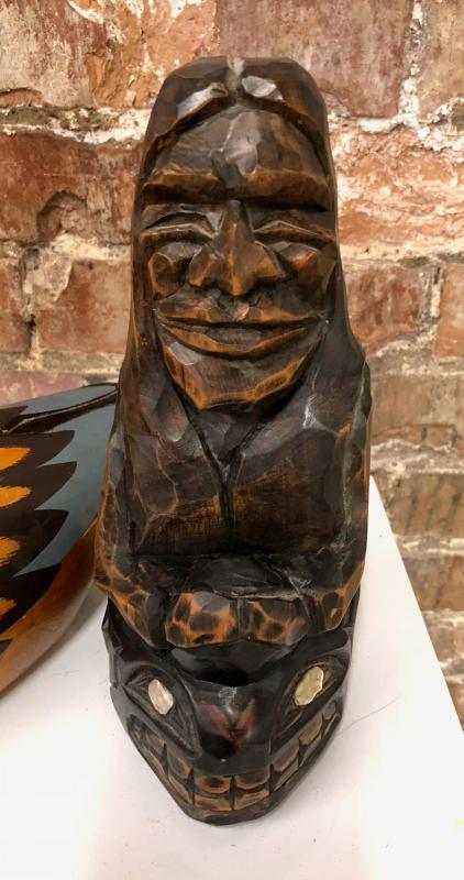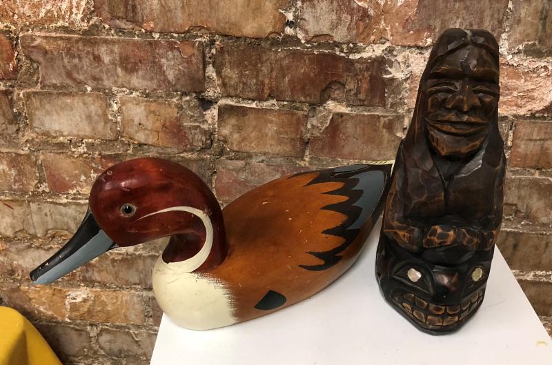 Here is a carved wooden duck decoy and a wood carving from the Pacific Northwest...