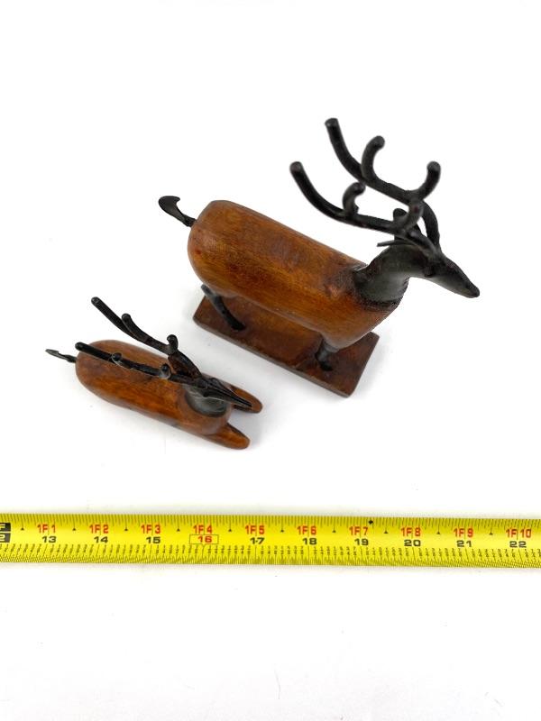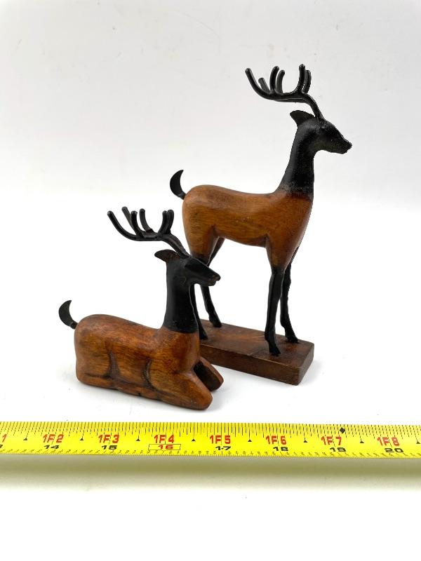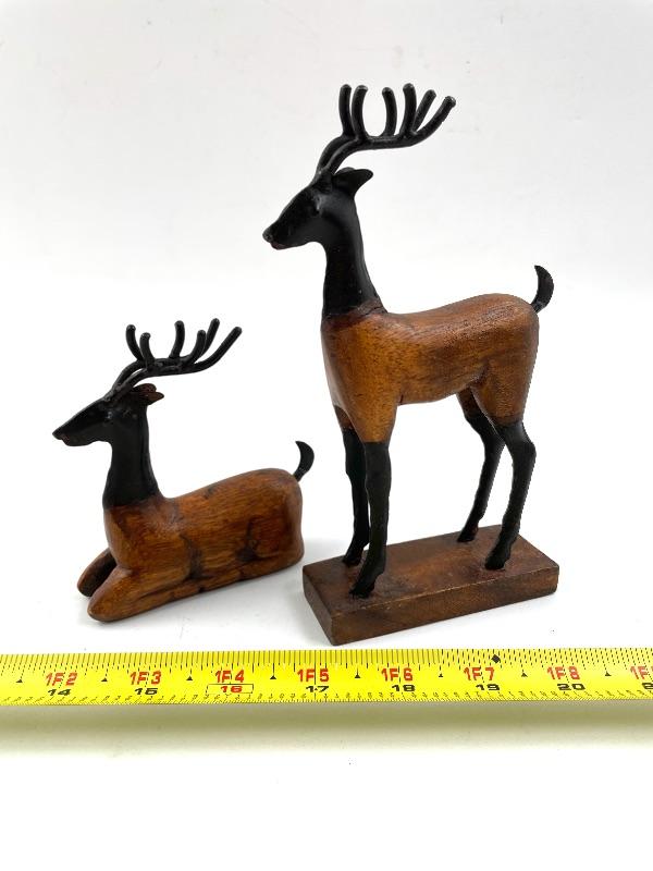 WOODEN DEER FIGURINES SET OF 2