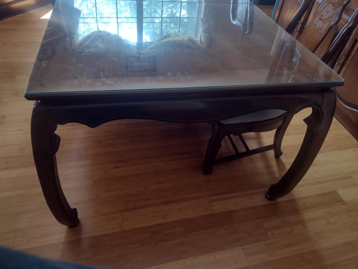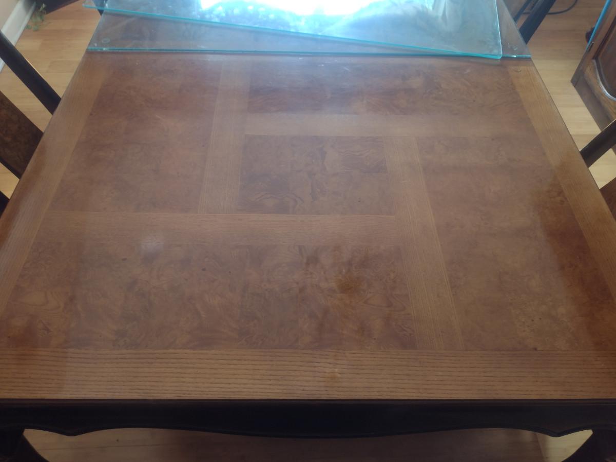 Wooden Dining Table with Glass Top