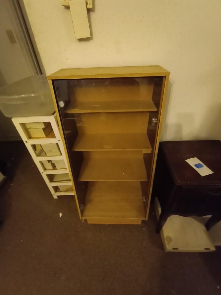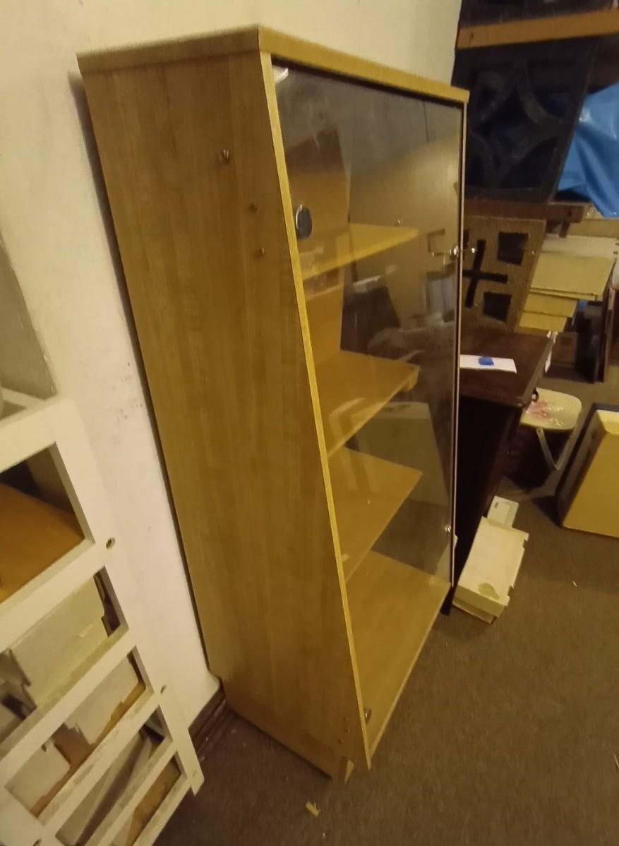 WOODEN DISPLAY CABINET WITH LOCKING GLASS FRONT & KEY