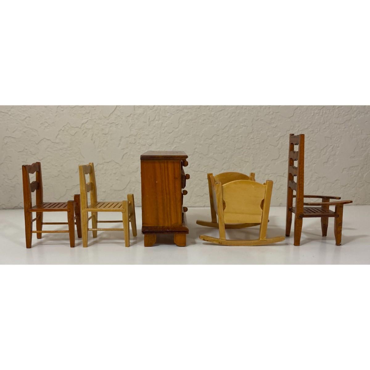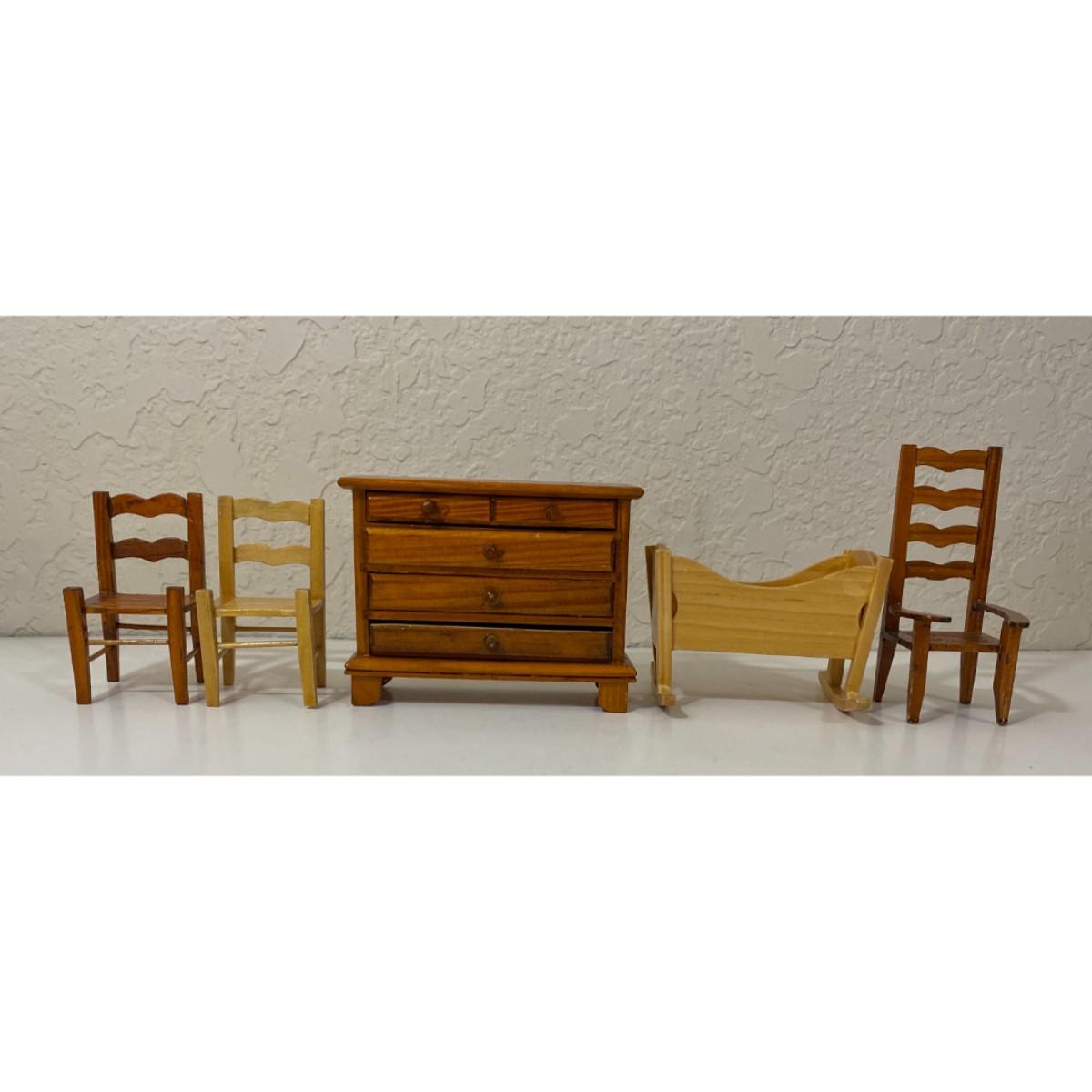 Wooden Doll House Furniture: 4 Drawer Dresser, Cradle, Three Chairs