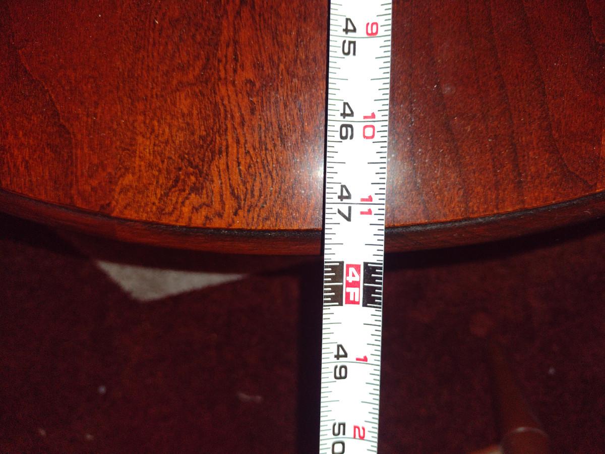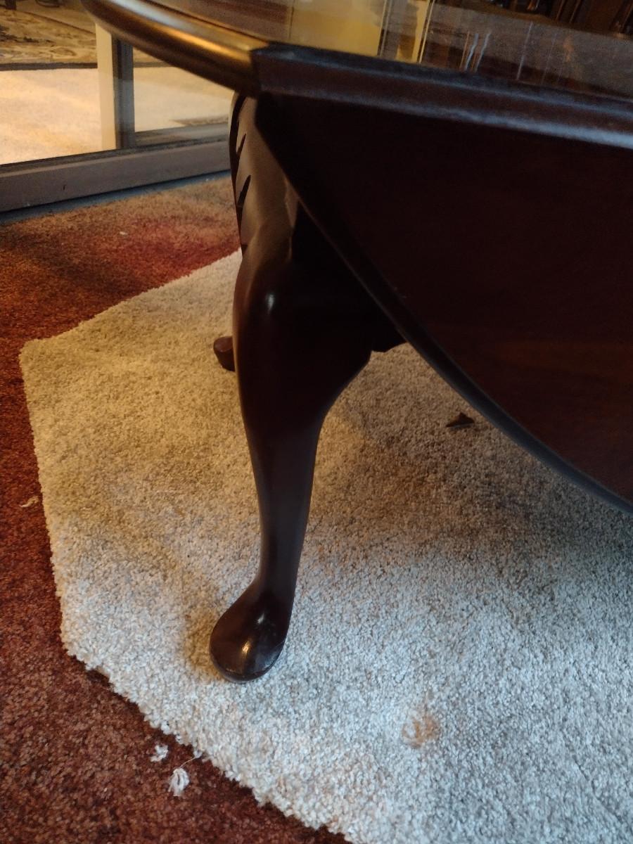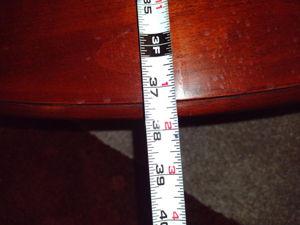 Wooden Double Drop Leaf Coffee Table. Item measures approx 47 1/2" long, 21" wide with leaves down, 37 3/4" with both leaves up.