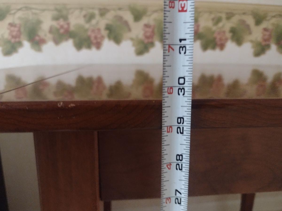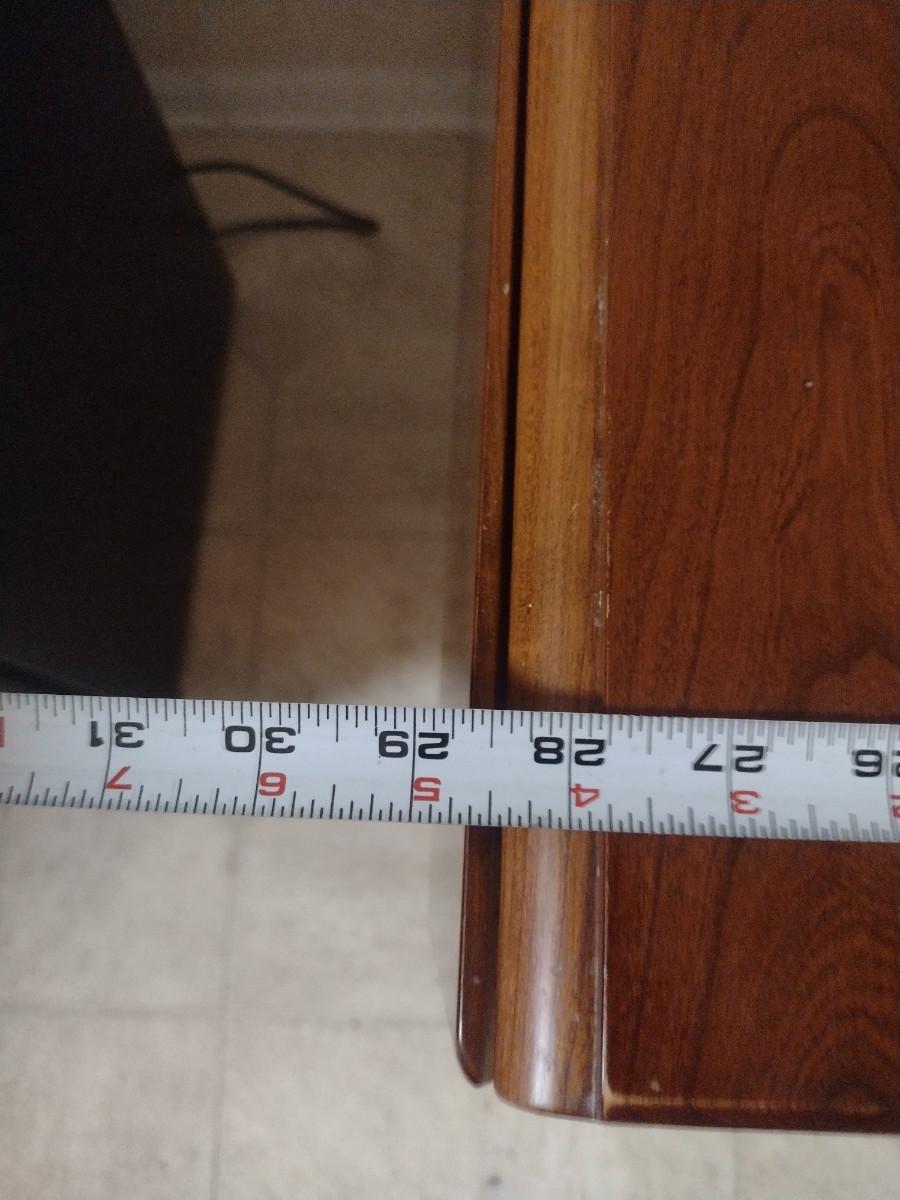 Wooden Double Drop Leaf Table. Item measures approx 32" deep x 29 3/4" tall. Width is 28 5/8" with both leaves down, 45" with both leaves up.