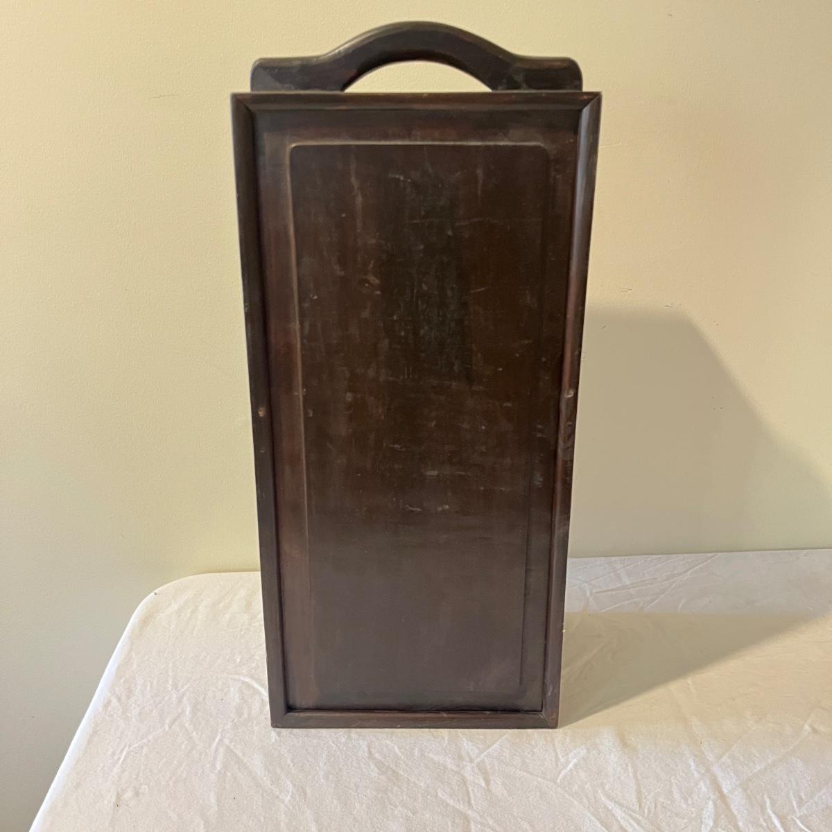 Lot includes a wooden dovetailed carrying box with sliding side. Box measures 7” x 9” x 21.5”H.