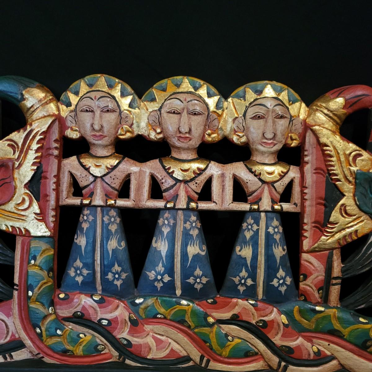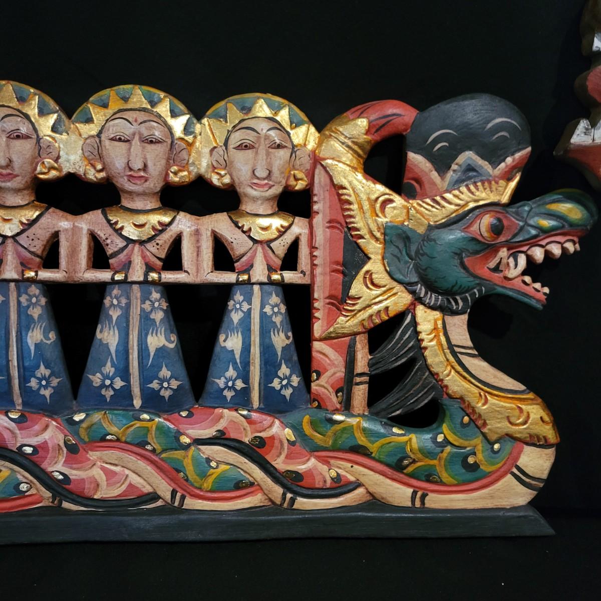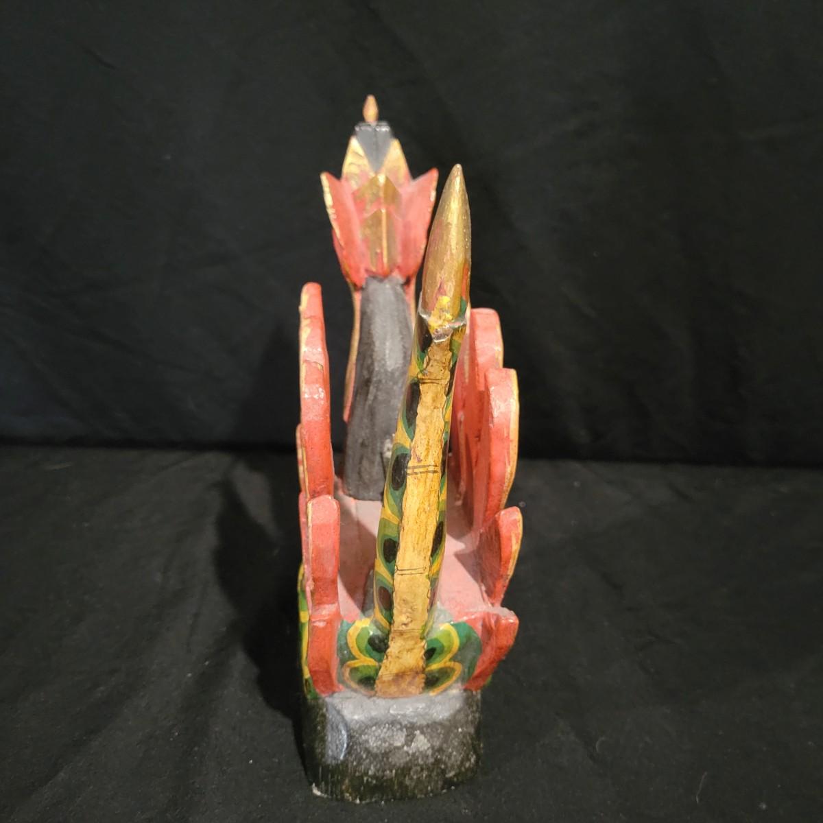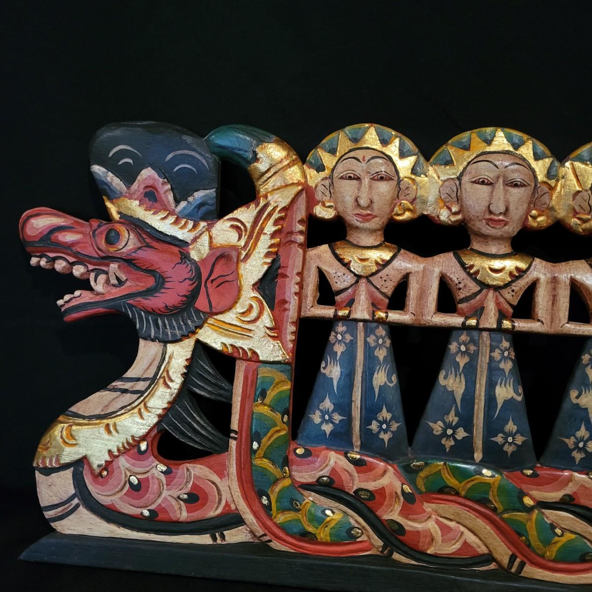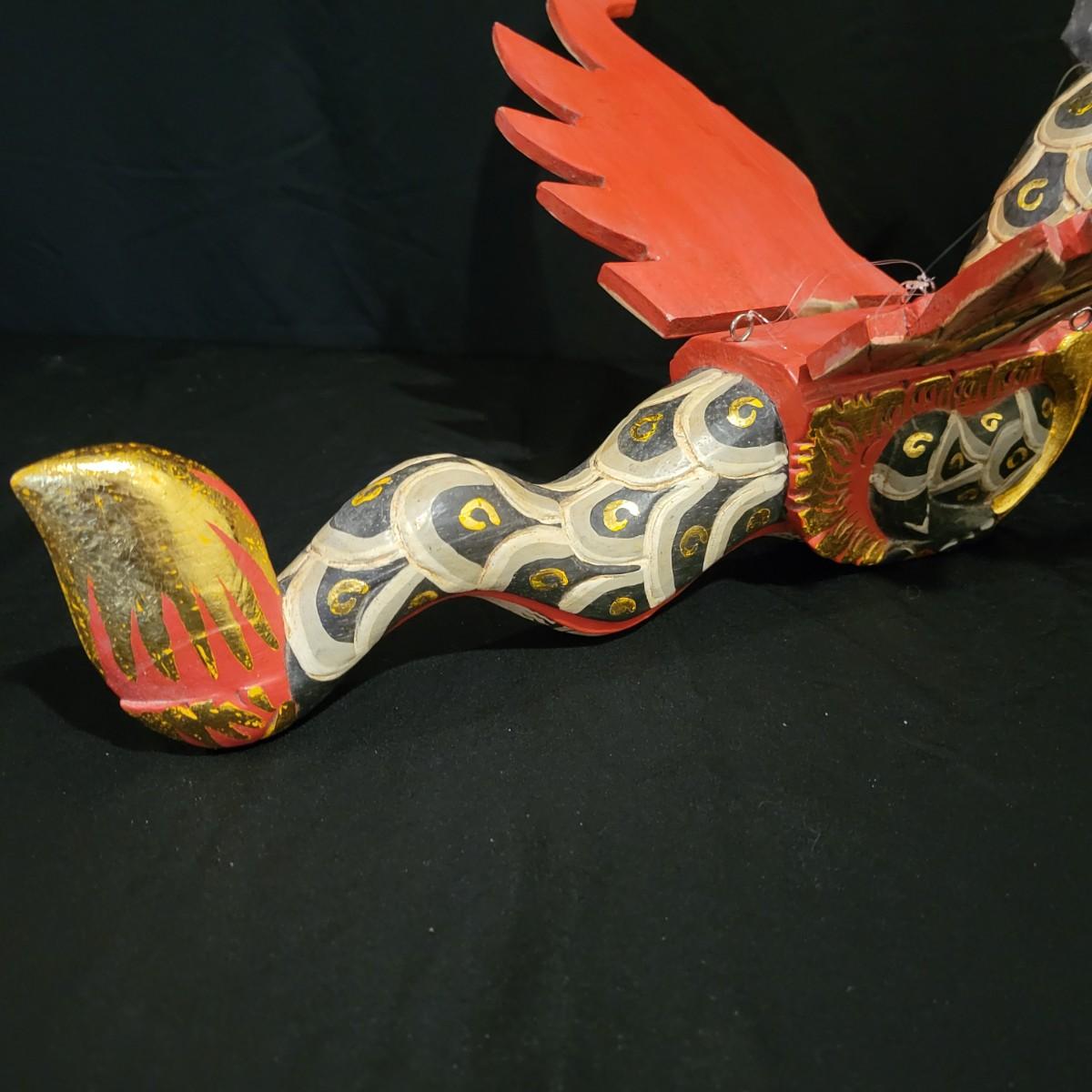 A collection of four wooden dragon carvings that appear to be hand painted. Two are wall reliefs and one is wired for hanging. The hanging dragon measures approximately 22" x 18" x 10"H. Shipping available