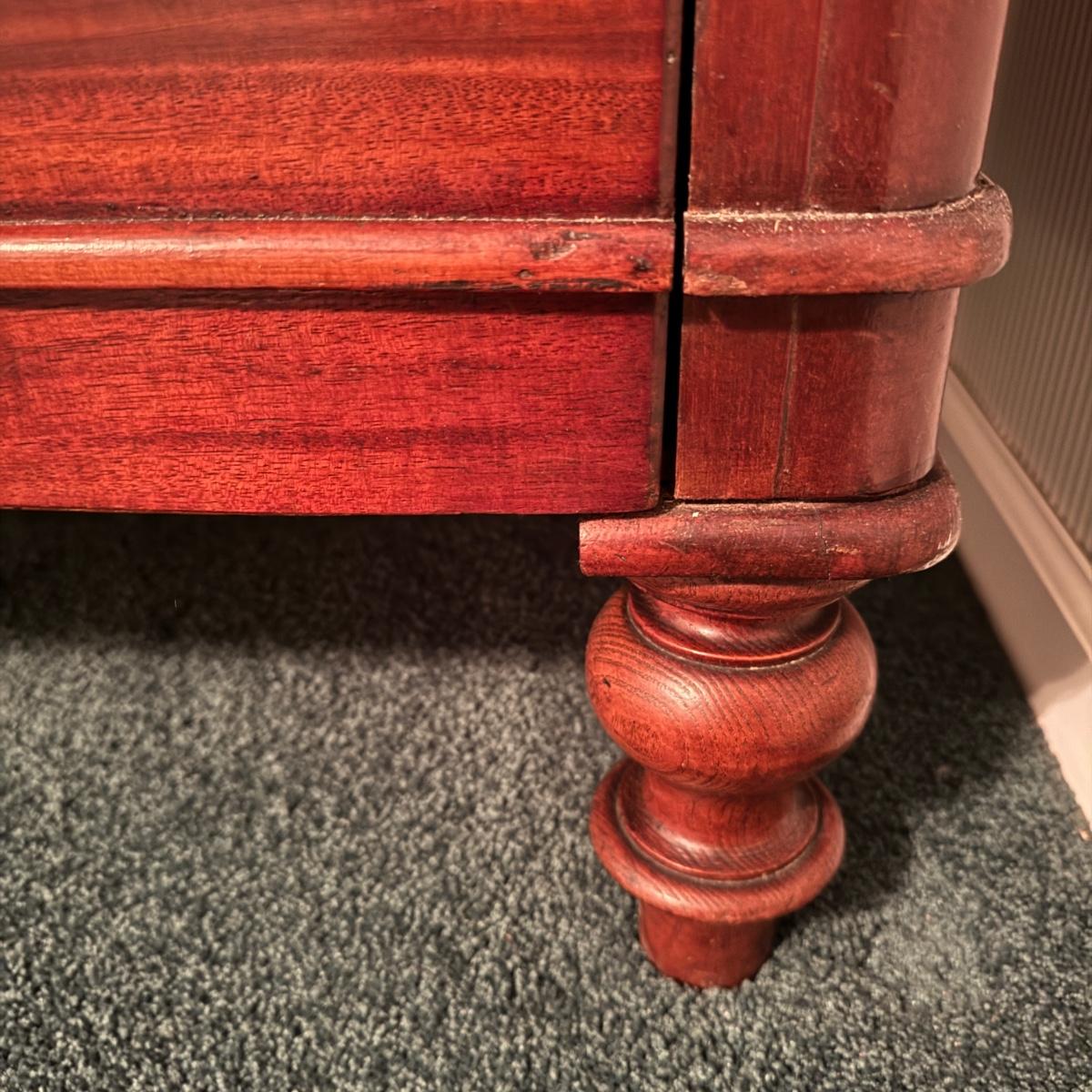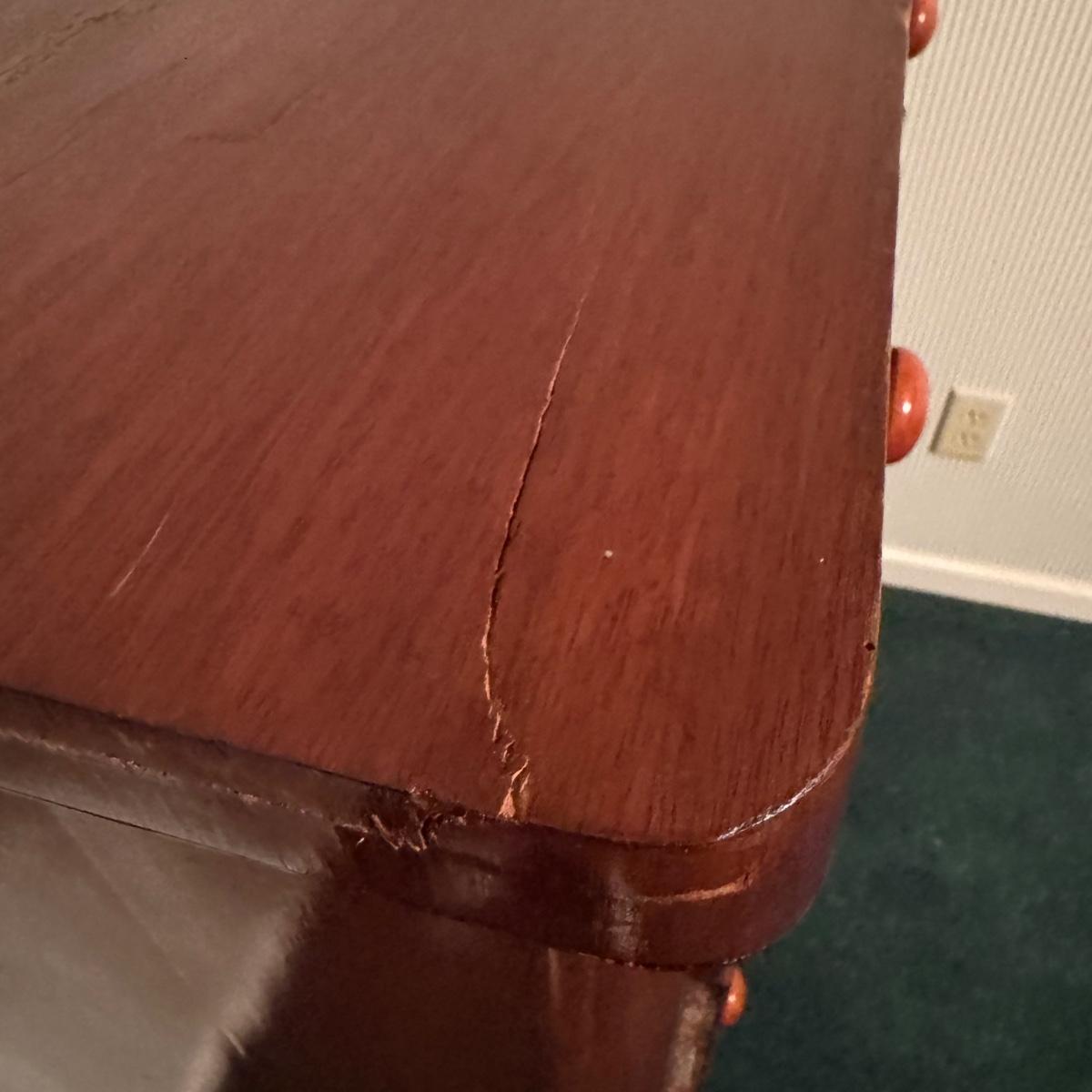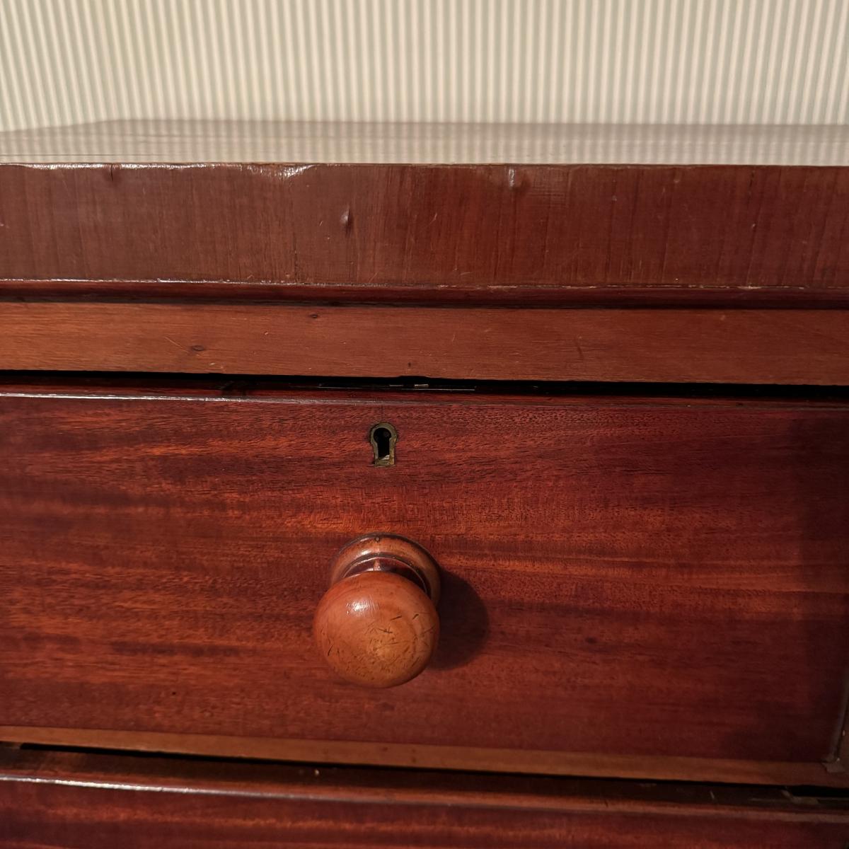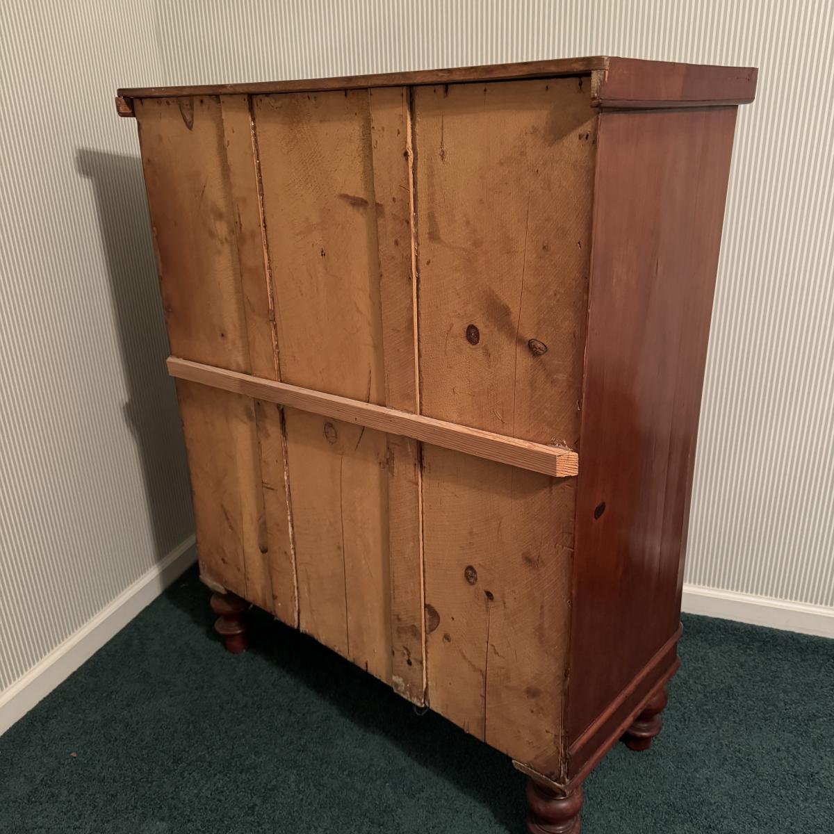 Nice size drawers on this wooden dresser. Slide easily to open and close although come off tracks easily when empty. No keys found. Some cracks in wood on top but they do not compromise the integrity of the piece. Measures 38” x 19” x 47”H Local pick up only. Winning bidder must bring assistance to help move and load this item due to its weight and/or size. It will need to go up a flight of stairs. This piece is all wood but not too heavy.