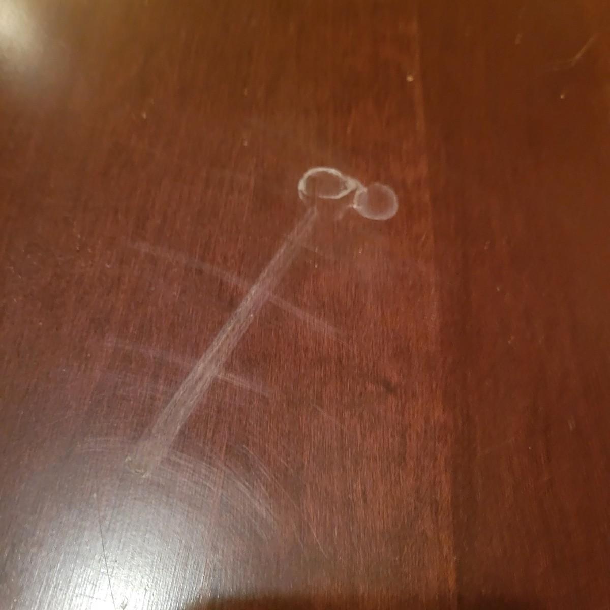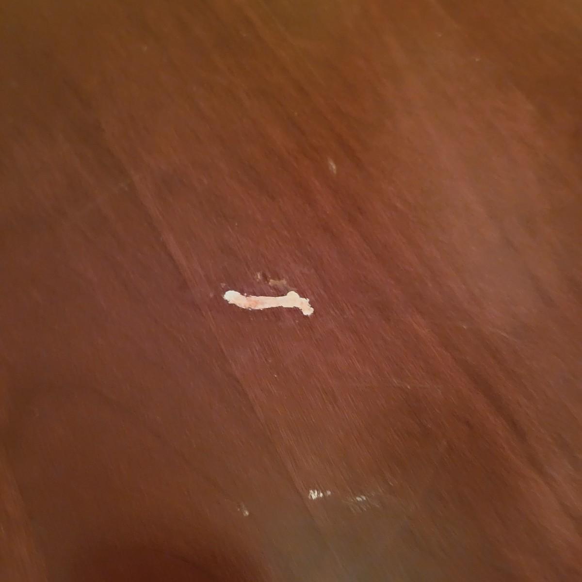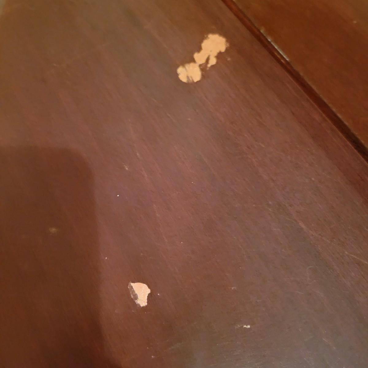A wooden drop leaf coffee table in fair condition with notable blemishes in its surface. Table is a dark cherry stain and measures approximately 34.5" x 49" x 16.5" Local pickup only