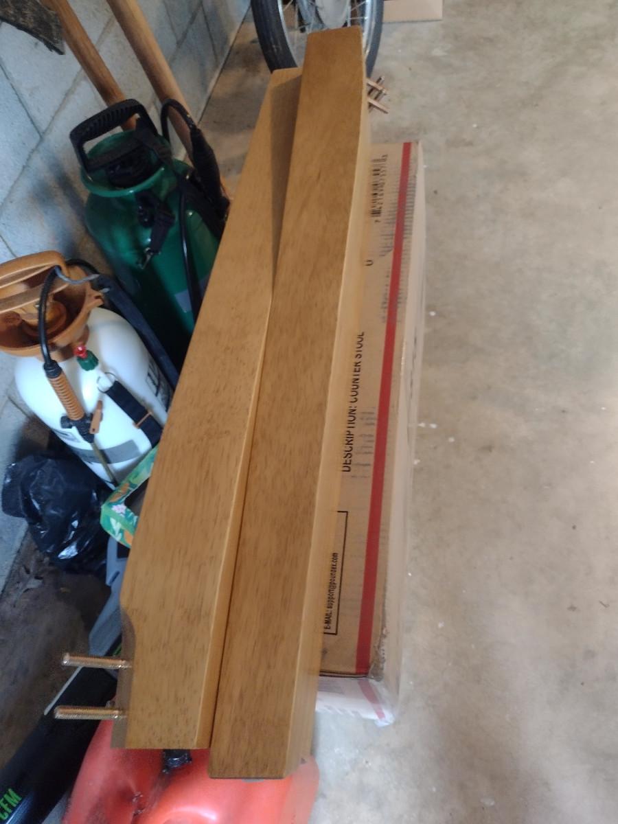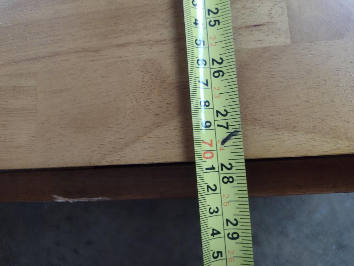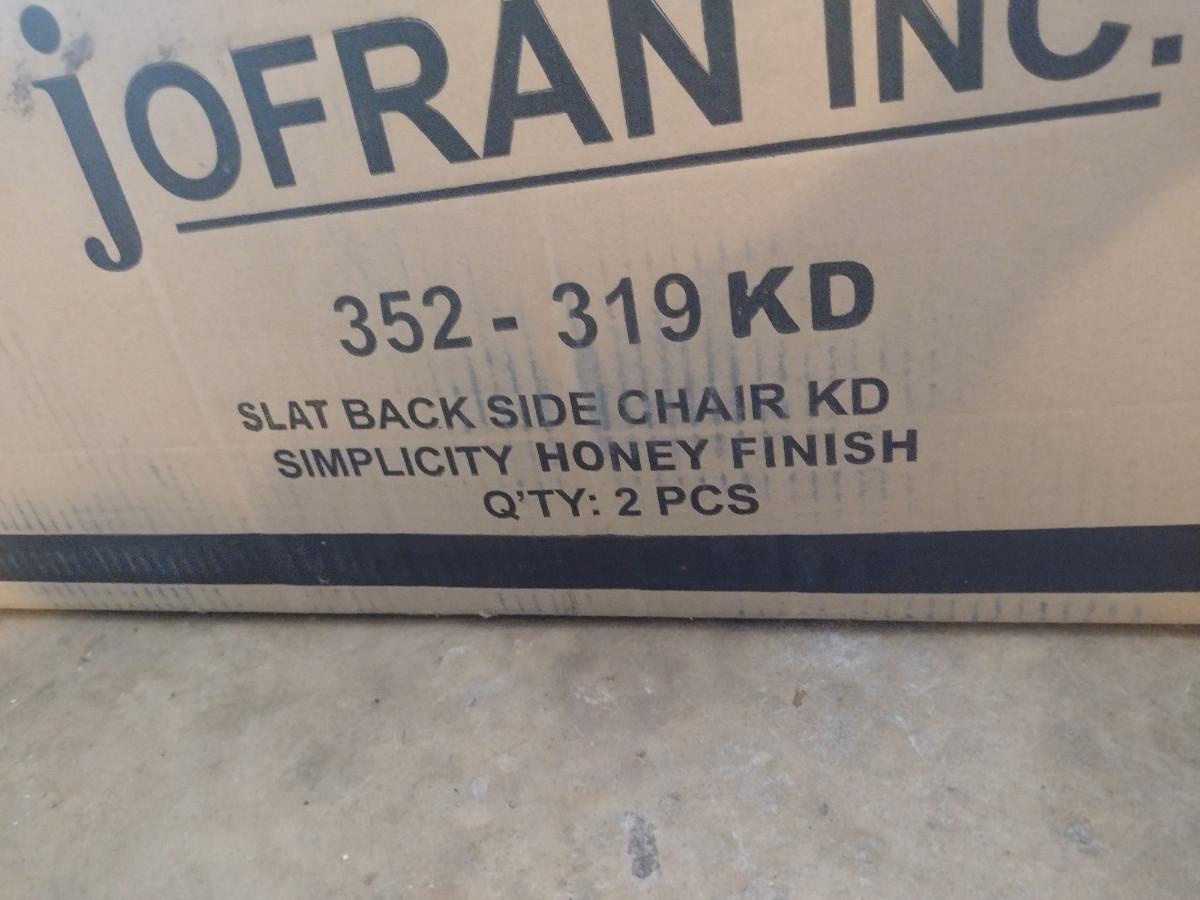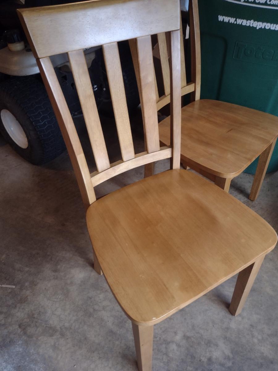 Wooden Drop Leaf Table with Four Chairs. Table is round and is 42" in diameter with leaves up- width decreases to 28 1/4" with leaves down. Table is approx 30 1/4" tall. Item is new and needs to be assembled.