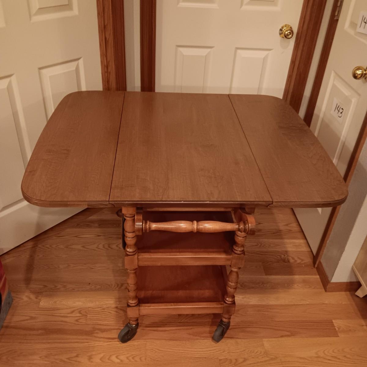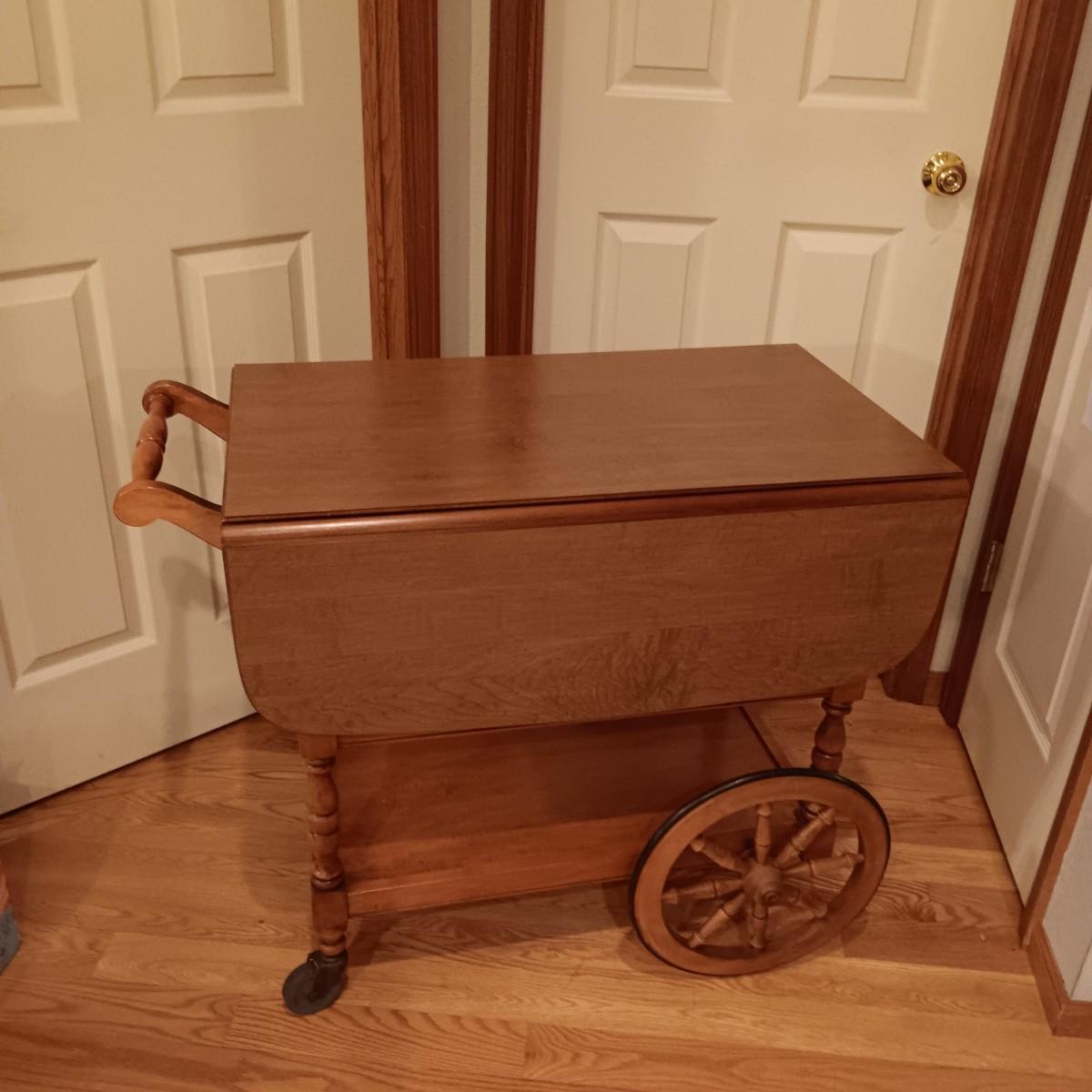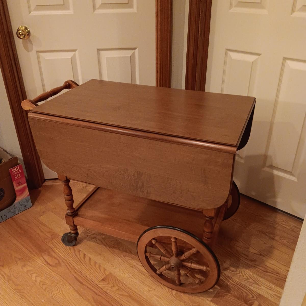 WOODEN DROP LEAF TEA CART