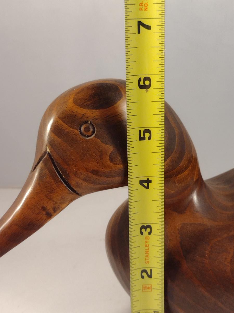 Wooden Duck Decoy Hickory, NC (#8). Item was made in Hickory, NC, but maker's mark not discernable. Item measures approx 6" tall, 16 1/2" long.