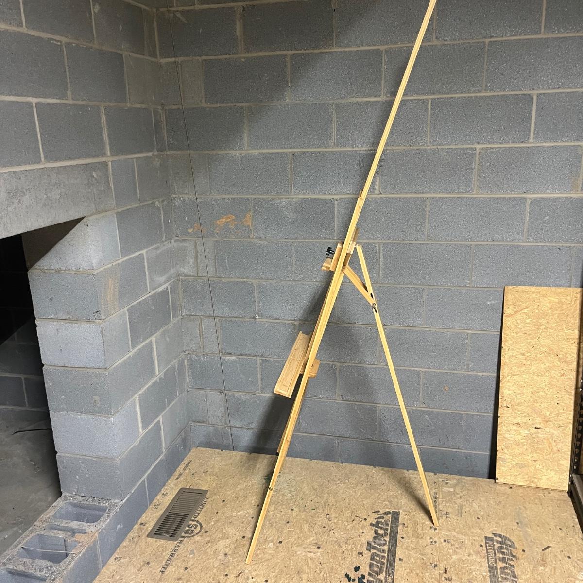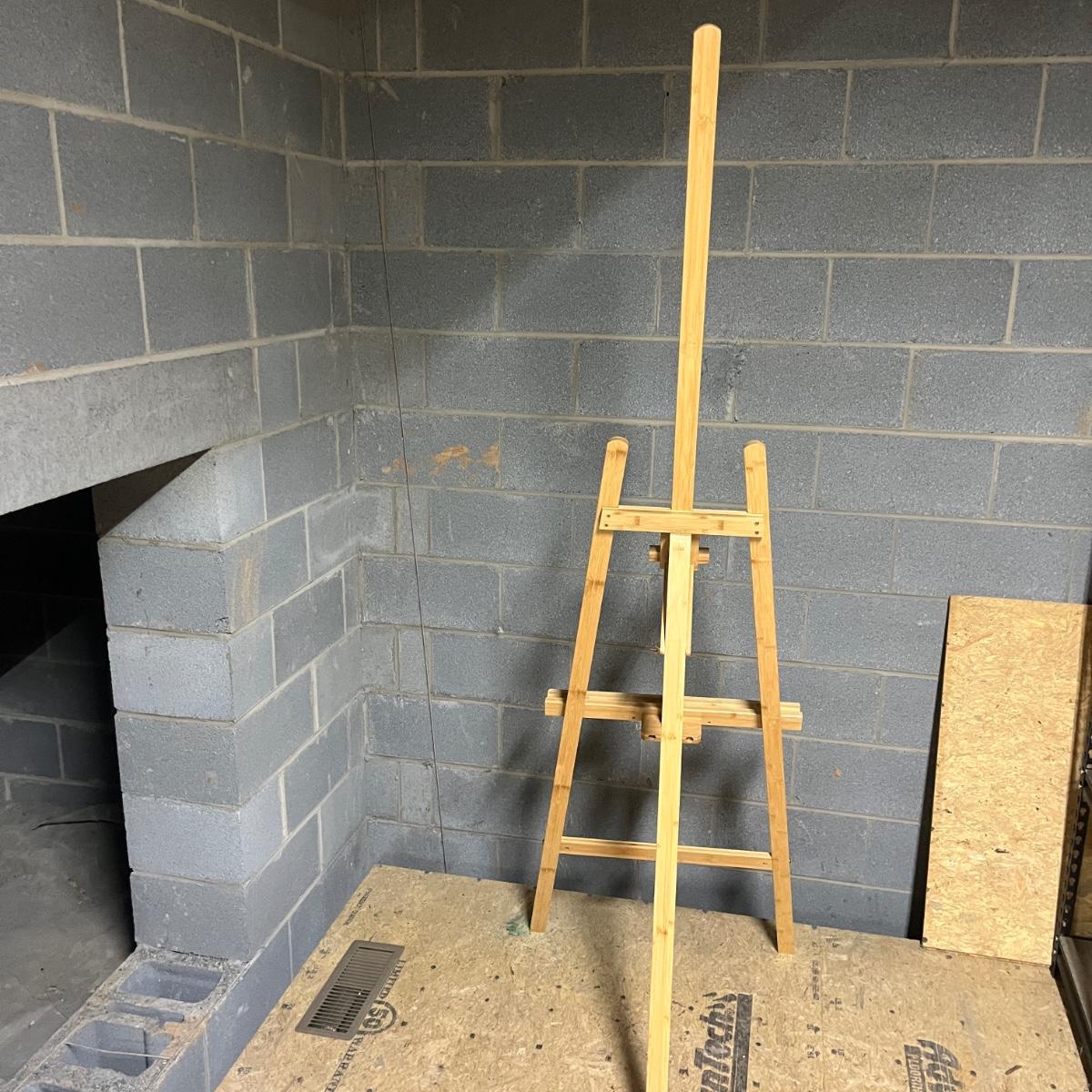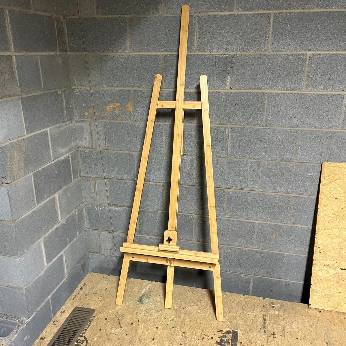 Lot includes a wooden adjustable height easel that measures 25” x 28” x 78”H at tallest setting.