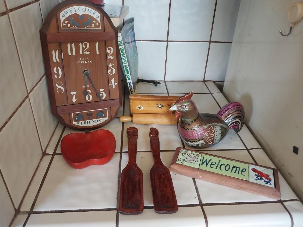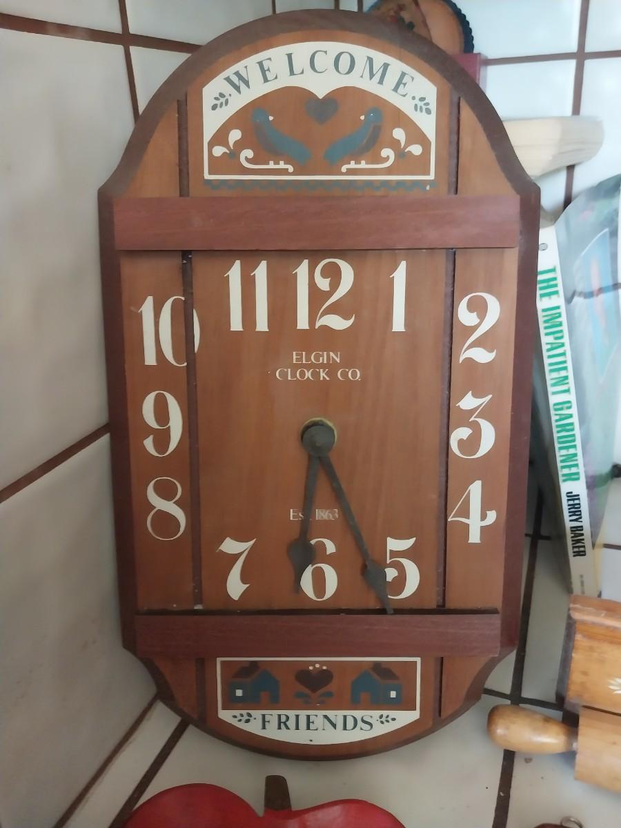 WOODEN ELGIN WALL CLOCK-CHICKEN-APPLE SPOON REST AND MORE