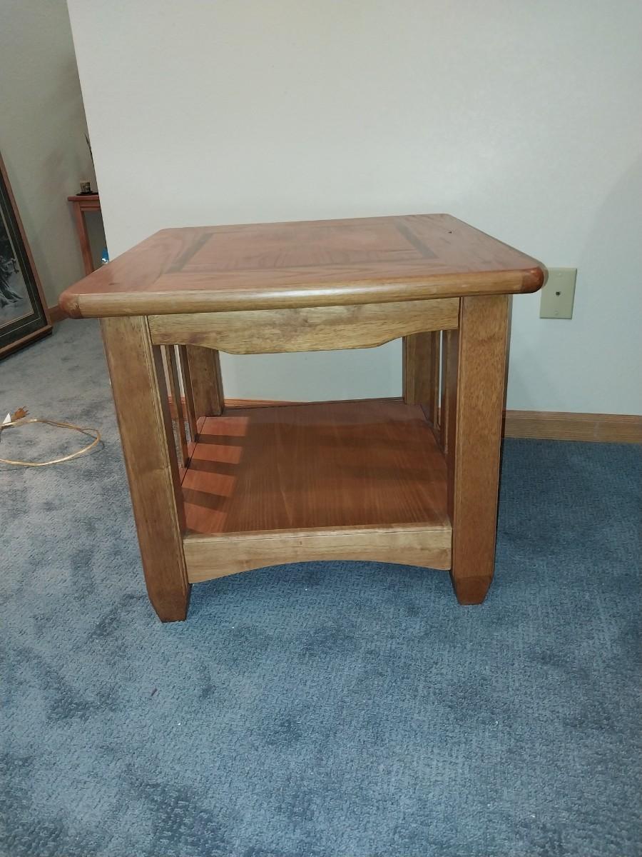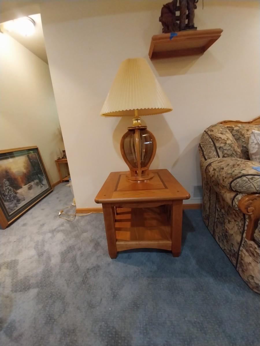 WOODEN 2 TEIR END TABLE AND TABLE LAMP