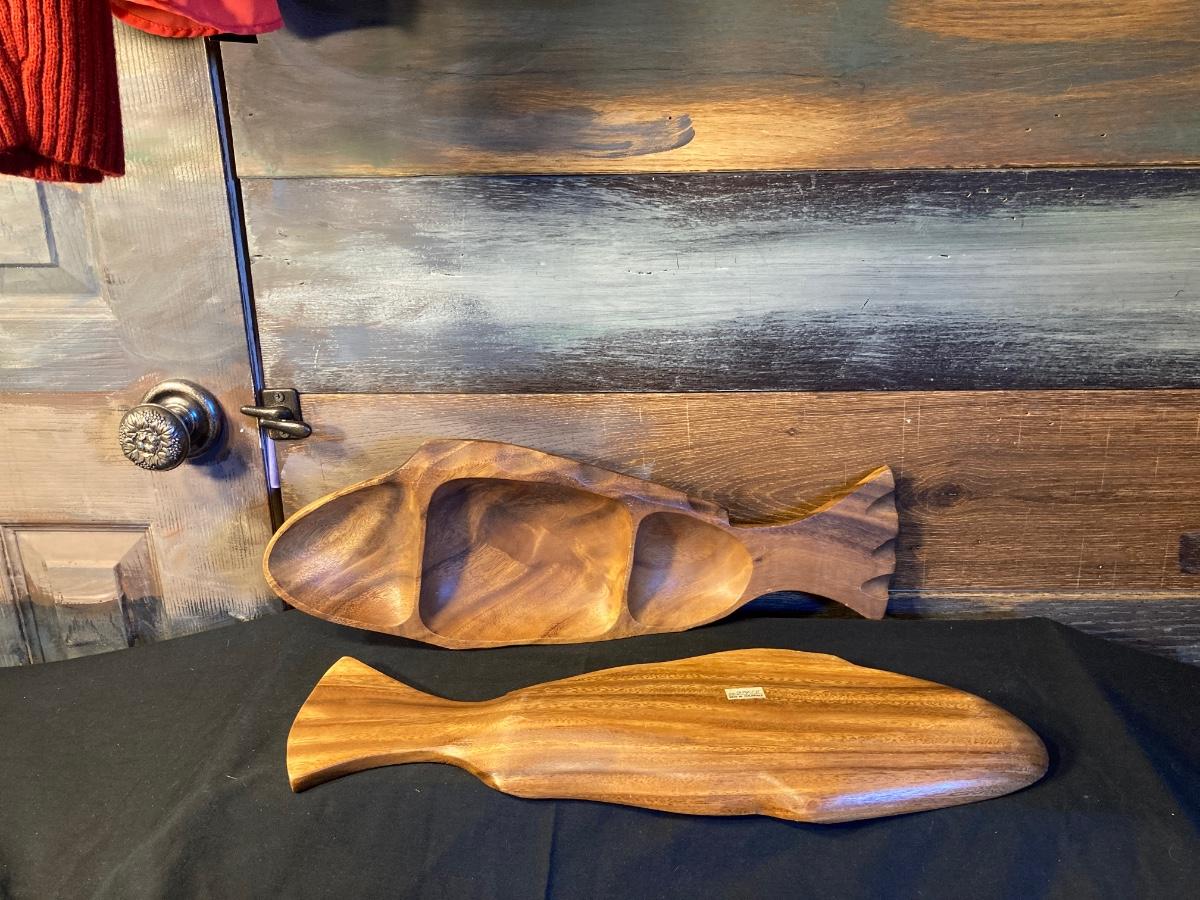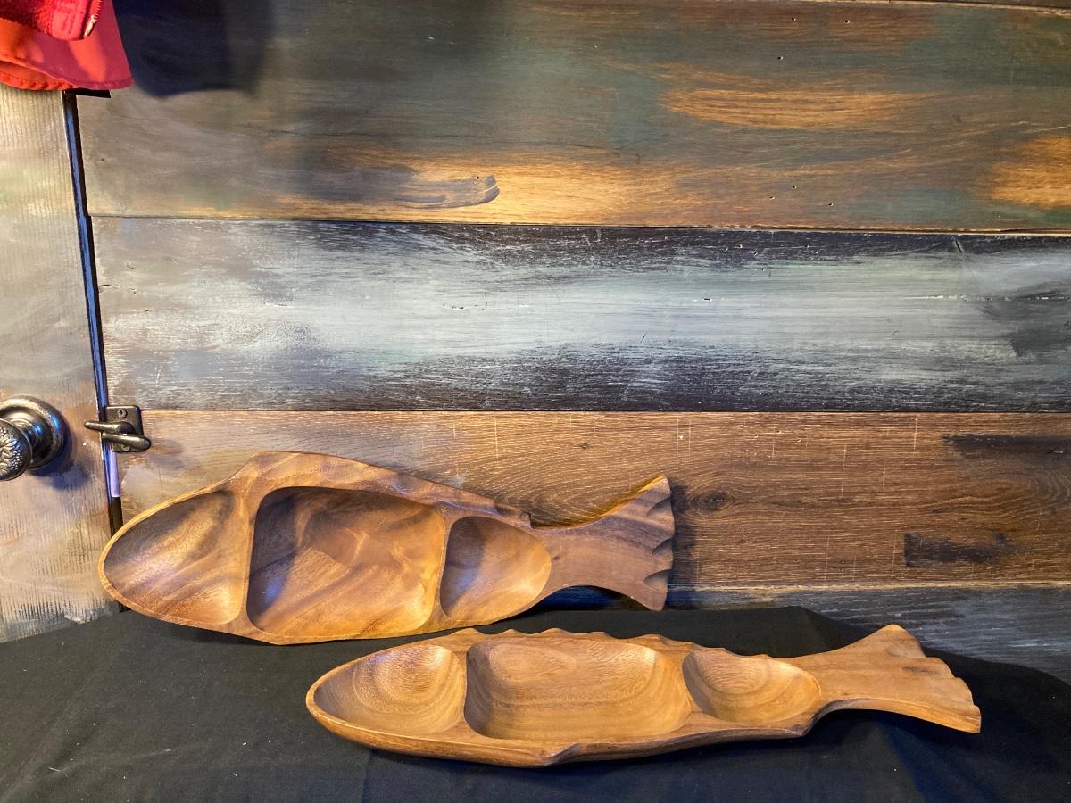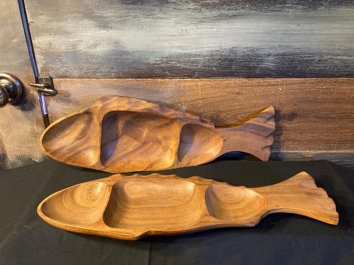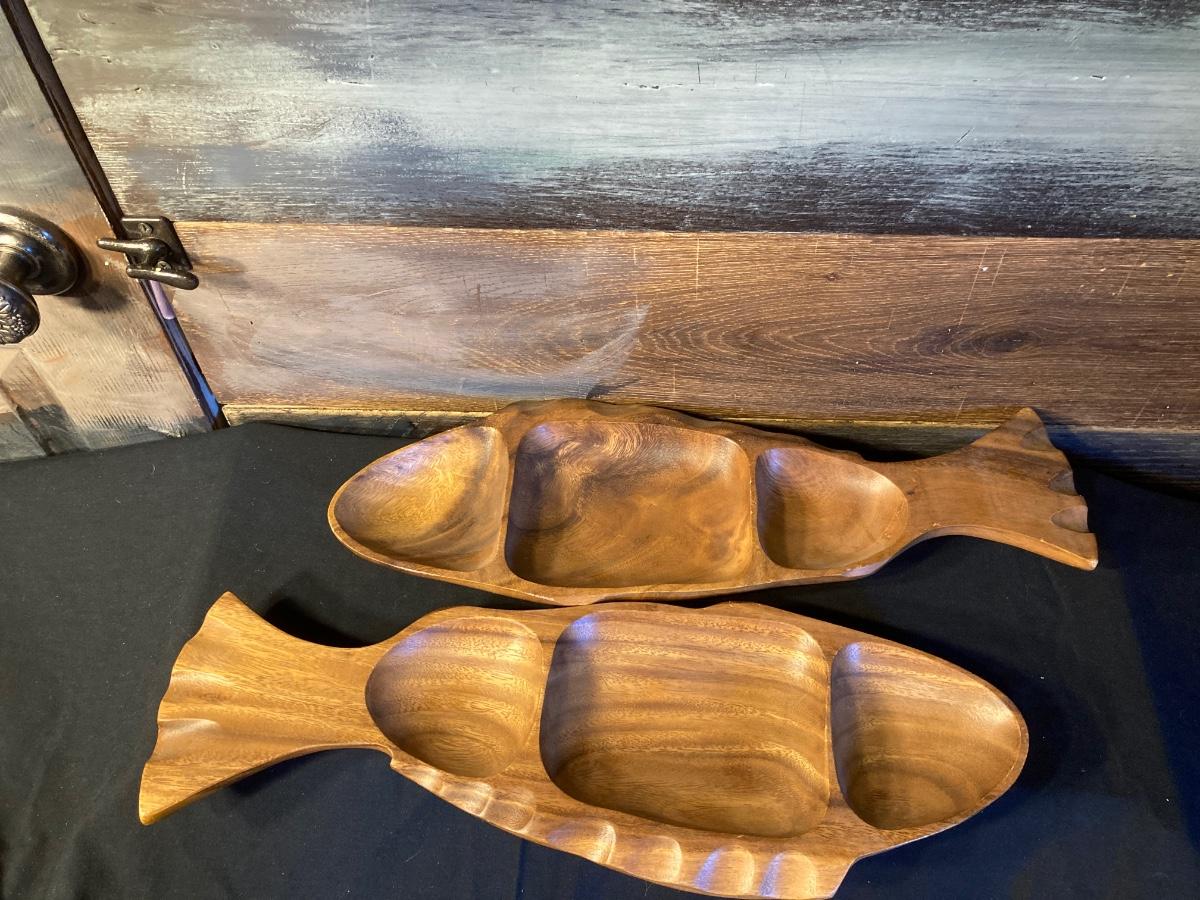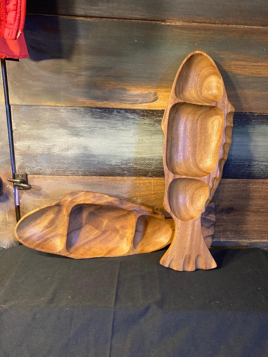 WOODEN FISH SERVING DISHES