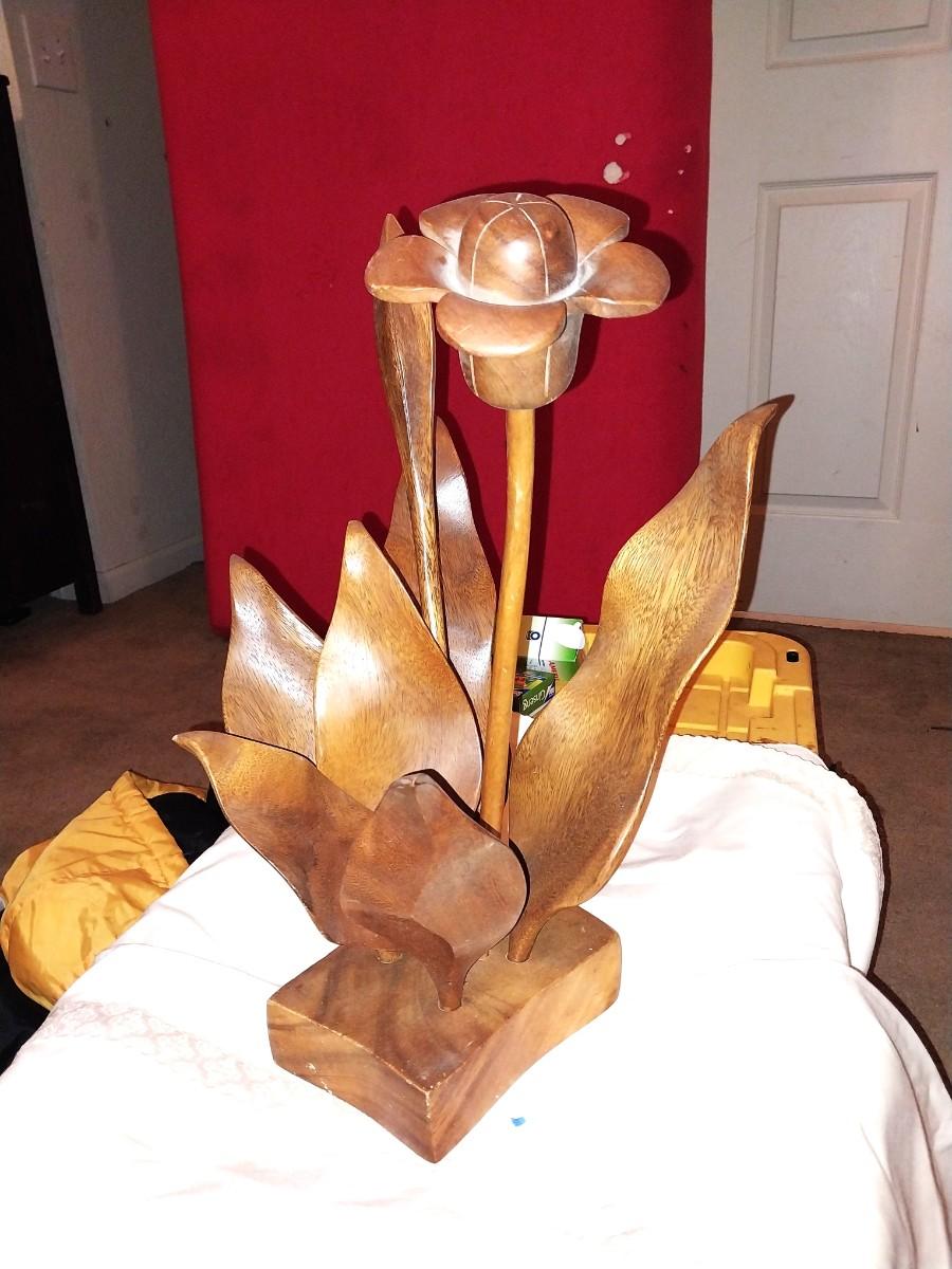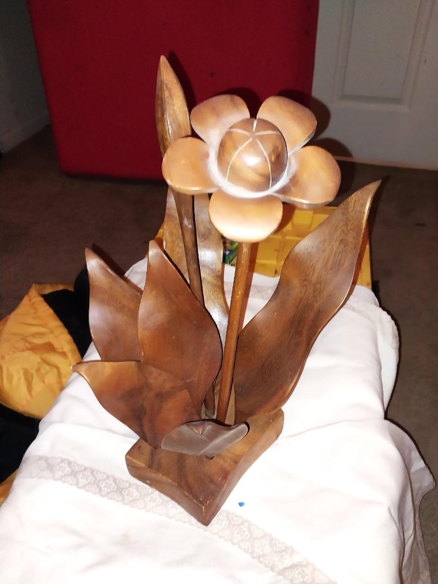 WOODEN FLOWER FIGURINE