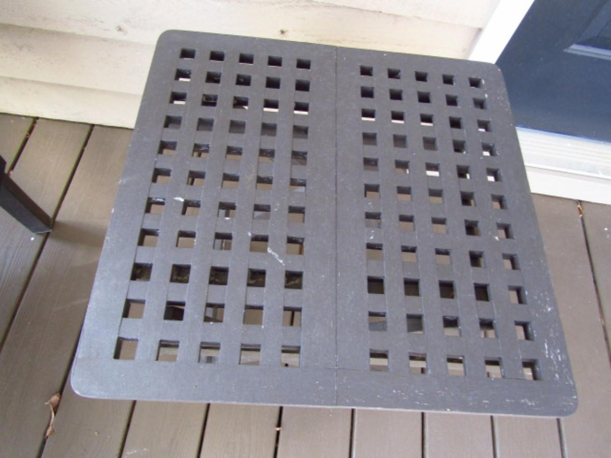 Wooden Folding Side Table for Patio/Porch- Choice #1 of 2. Measures approx 19 3/4" x 19 1/4".