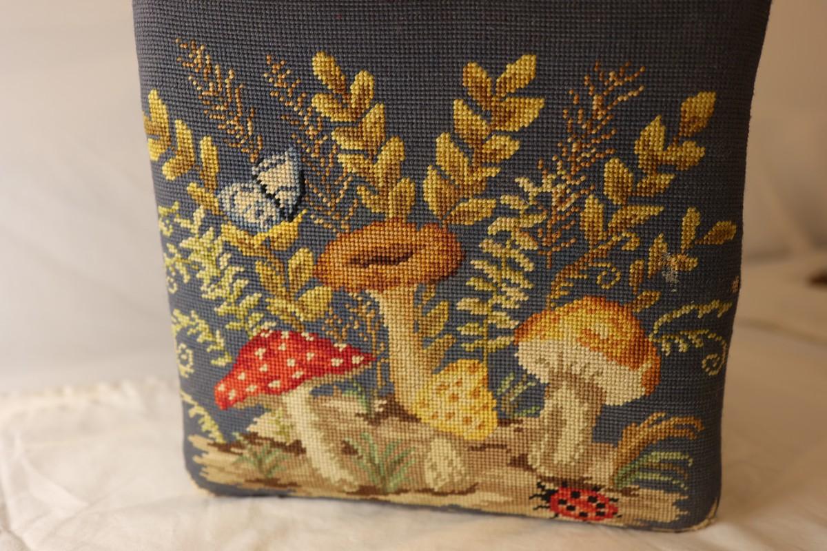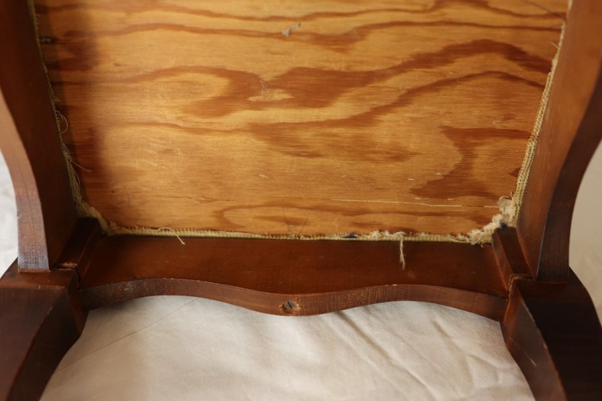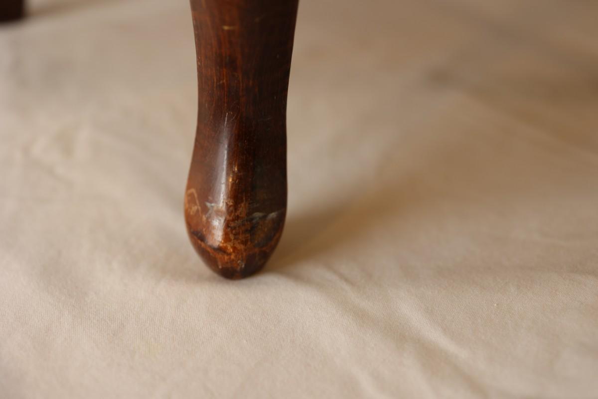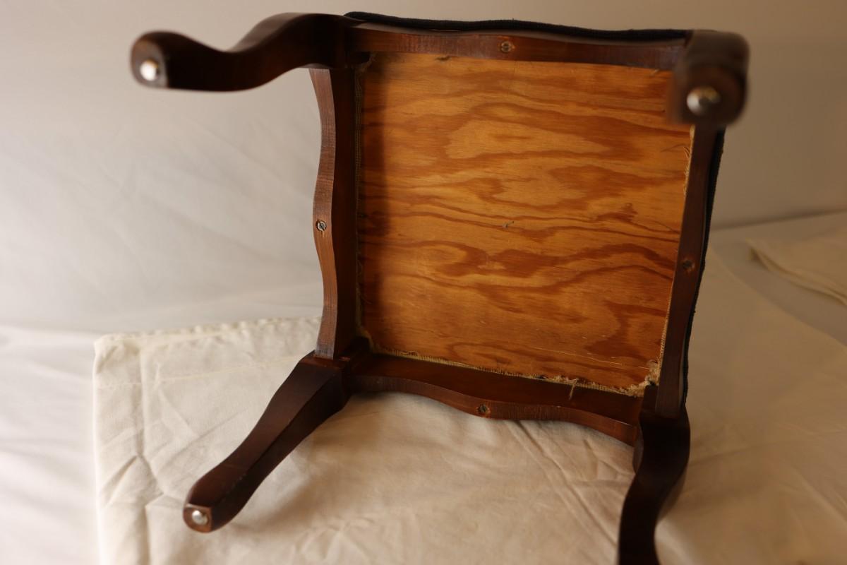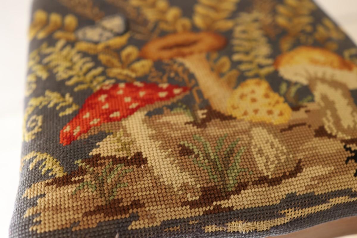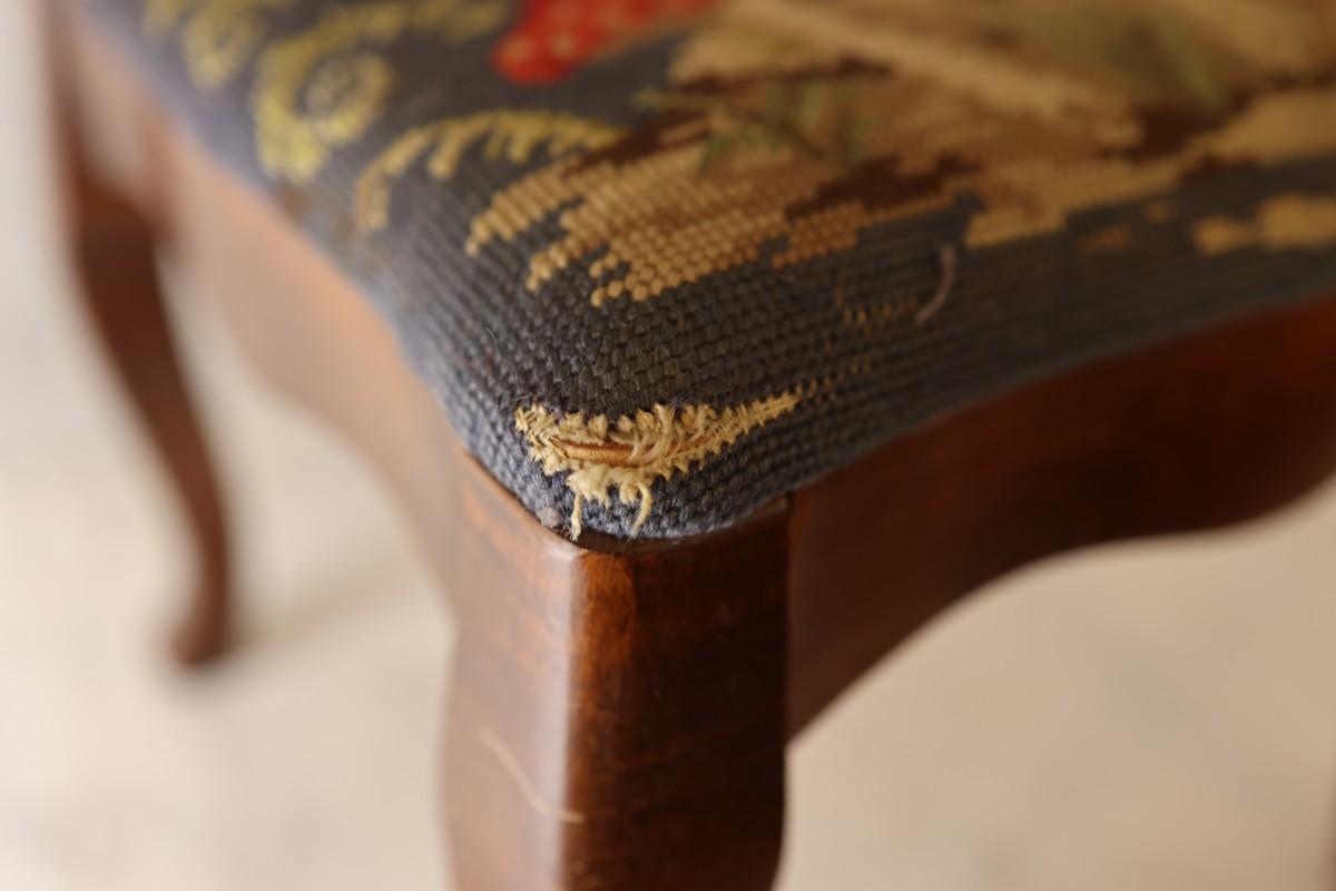 Wood Queen Anne style legs with vintage tapestry top. Some wear on the edges of tapestry, see pics.