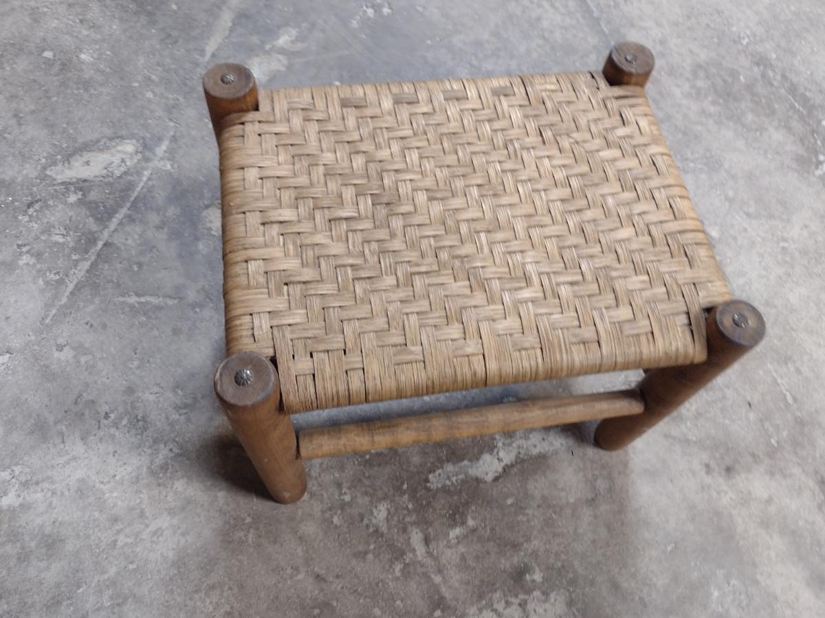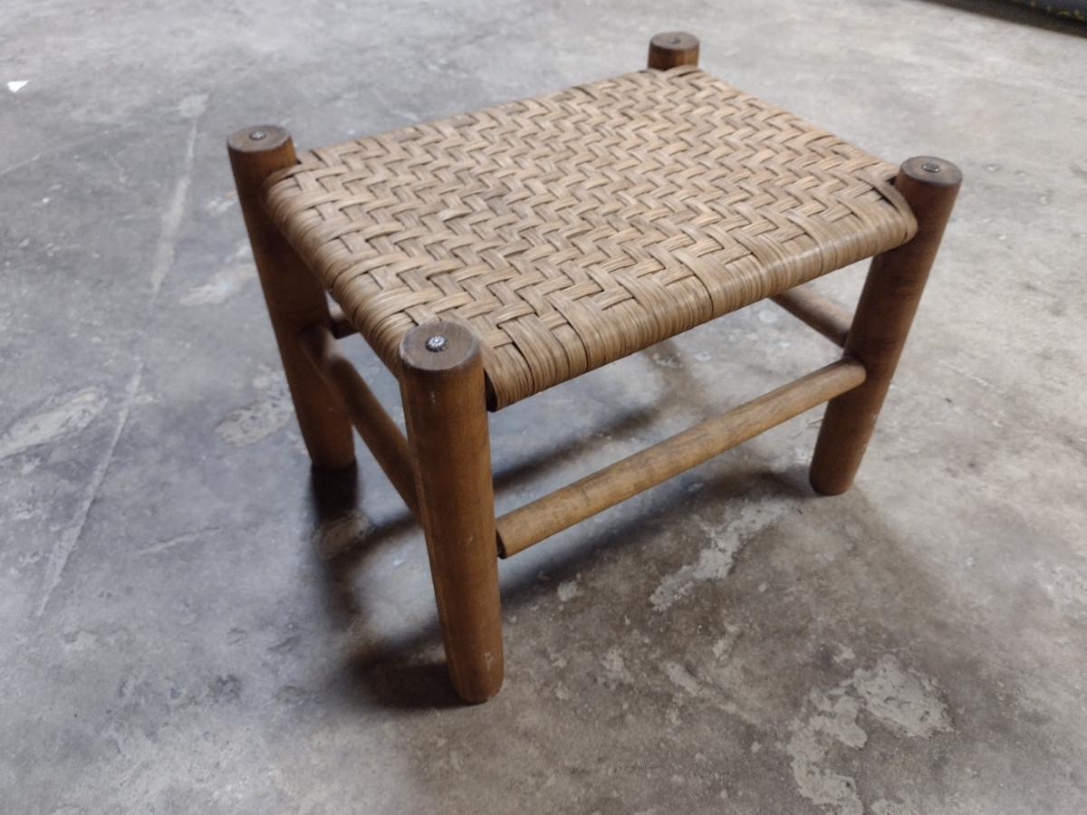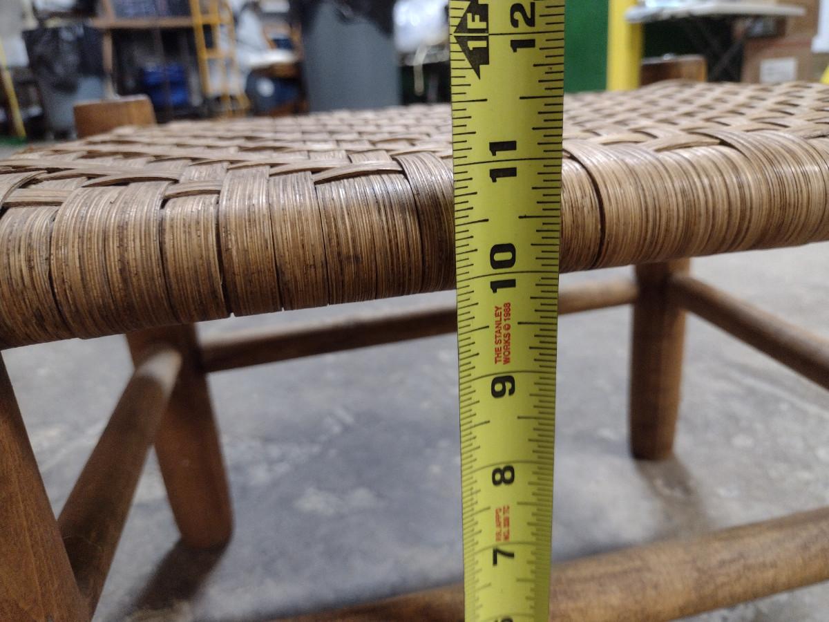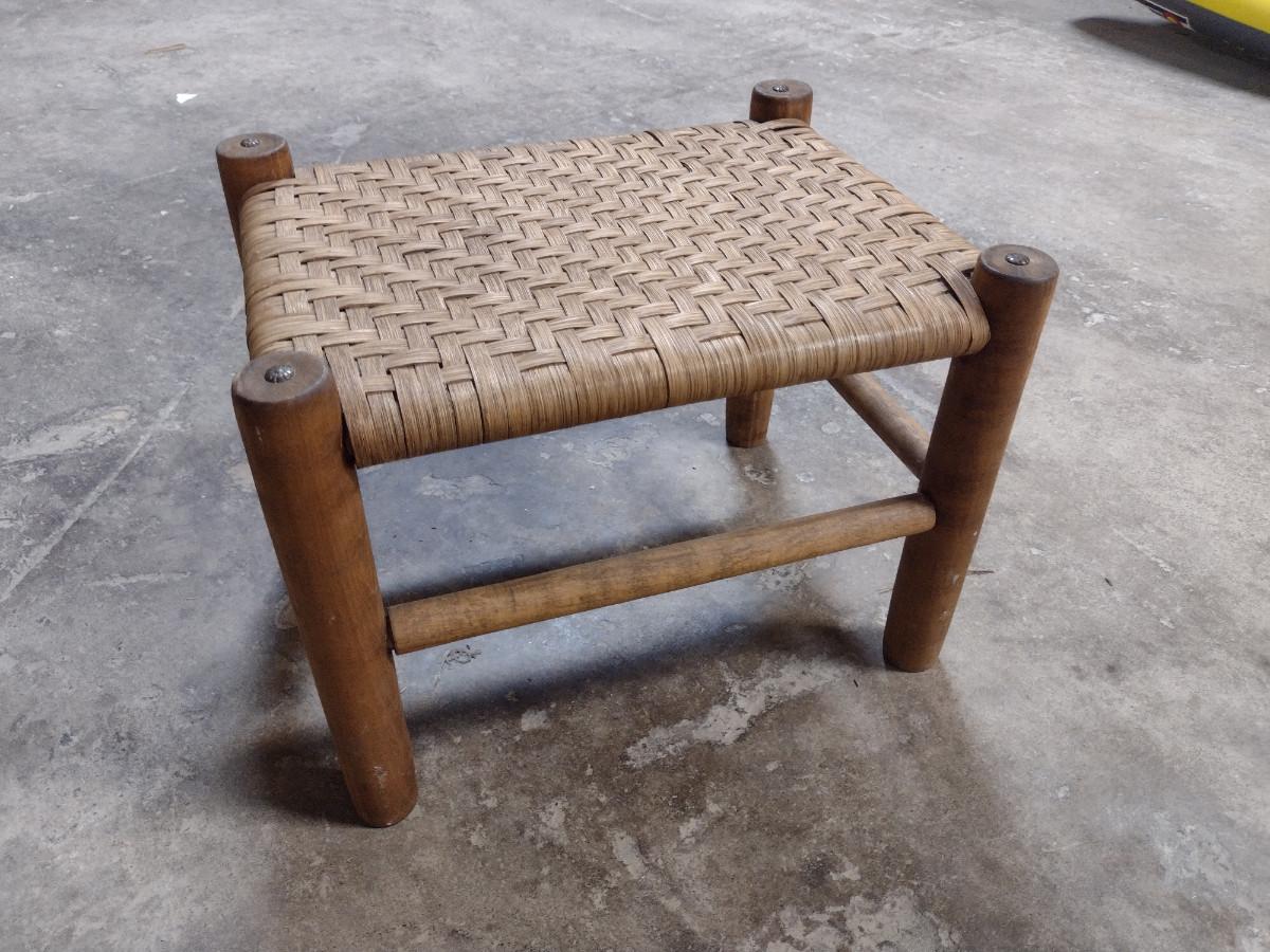 Wooden Frame Foot Stool with Woven Splint Wood Top