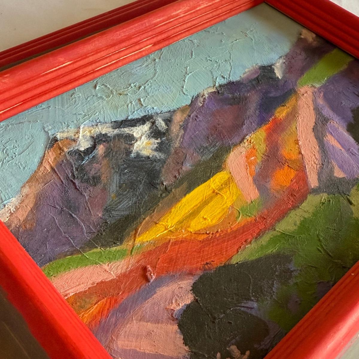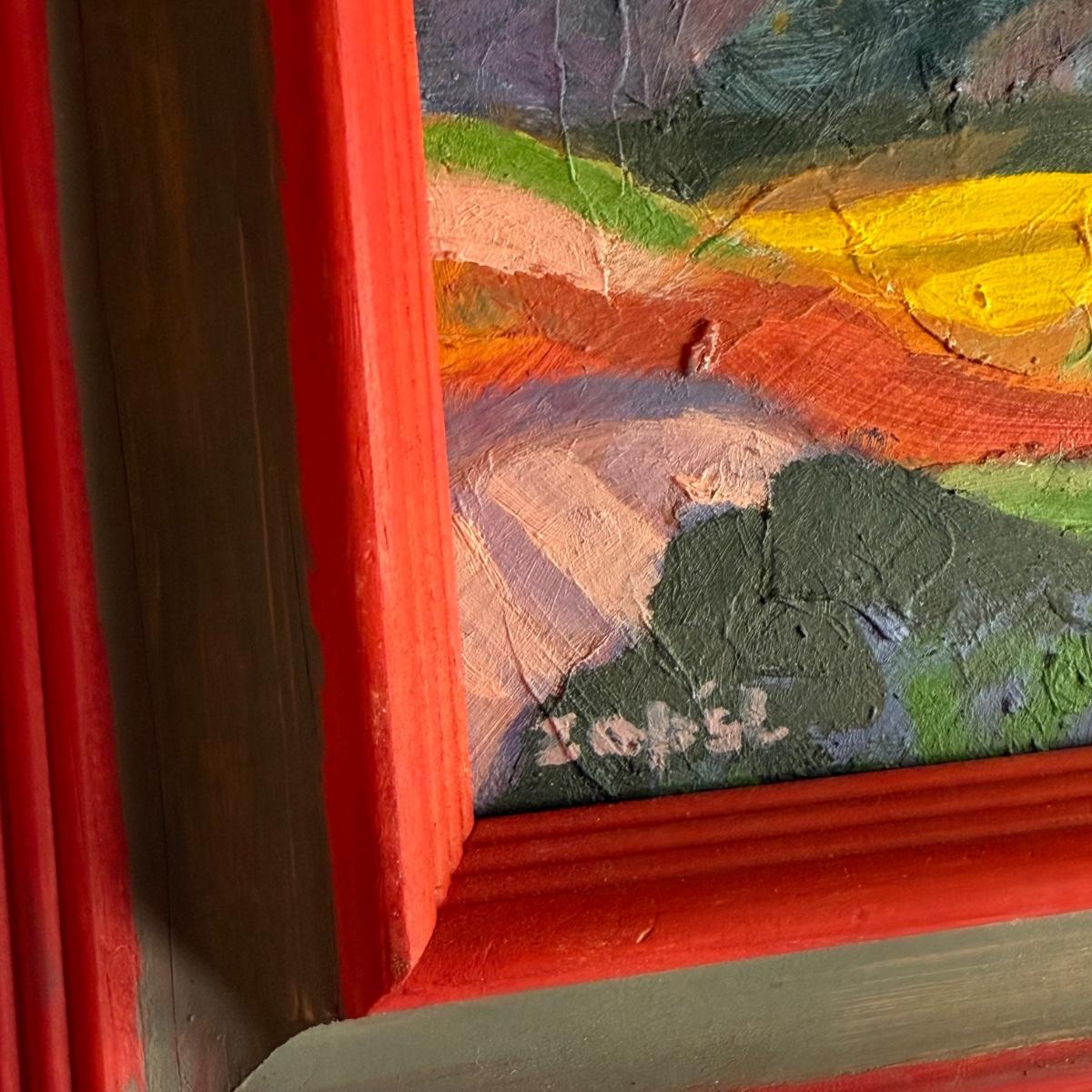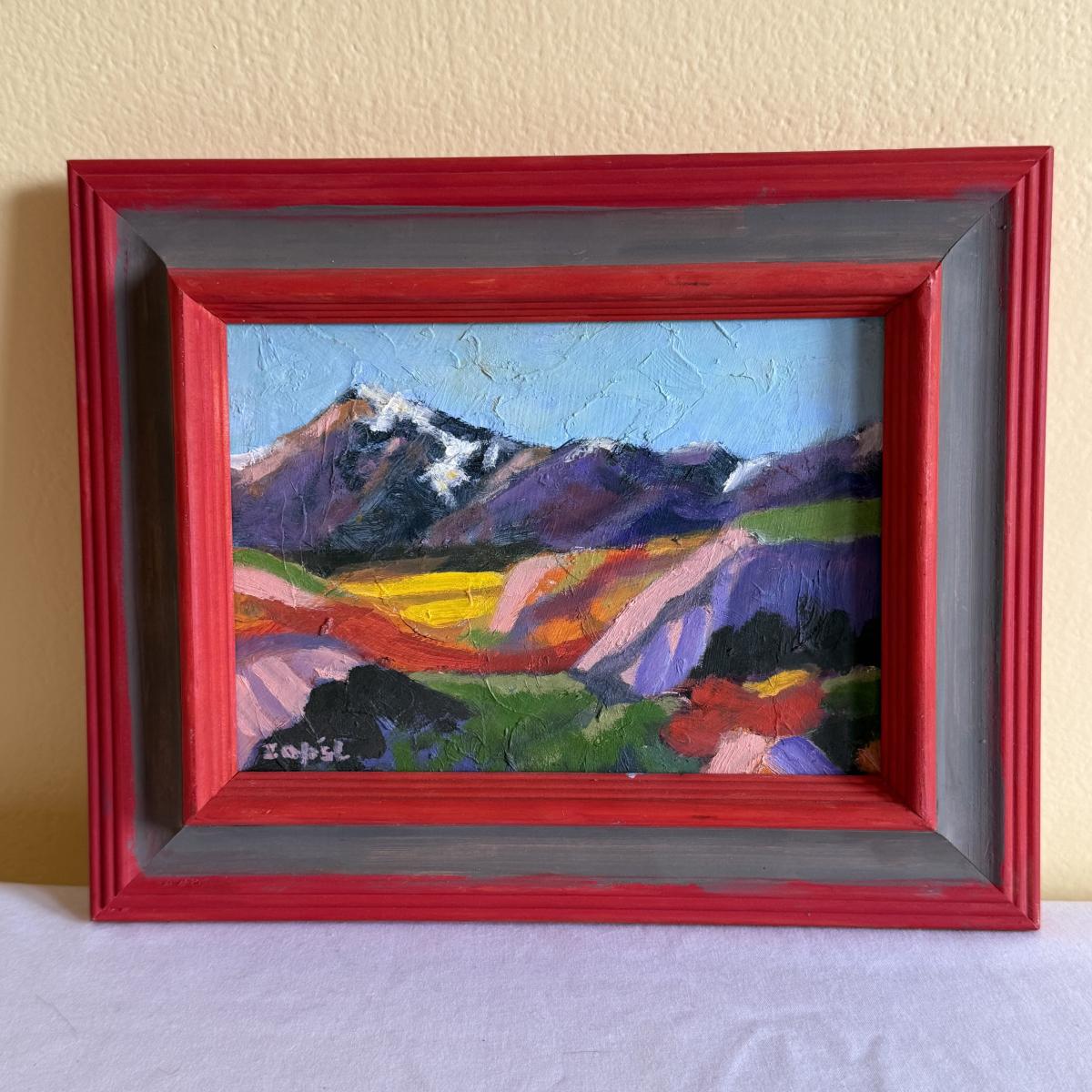 This painting on board is signed by the artist and is mounted in a wooden frame that measures 10” x 8”H. It appears to be an original but the signature can not be determined.