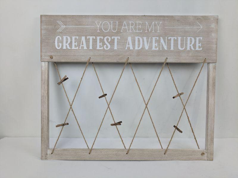 Wooden Frame W/Clothespin Picture Holders "You Are My Greatest Adventure" - New