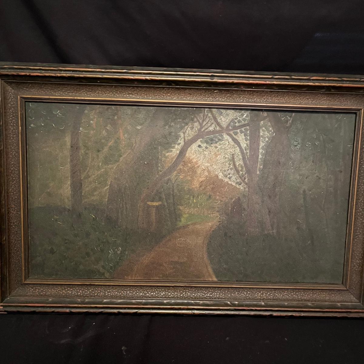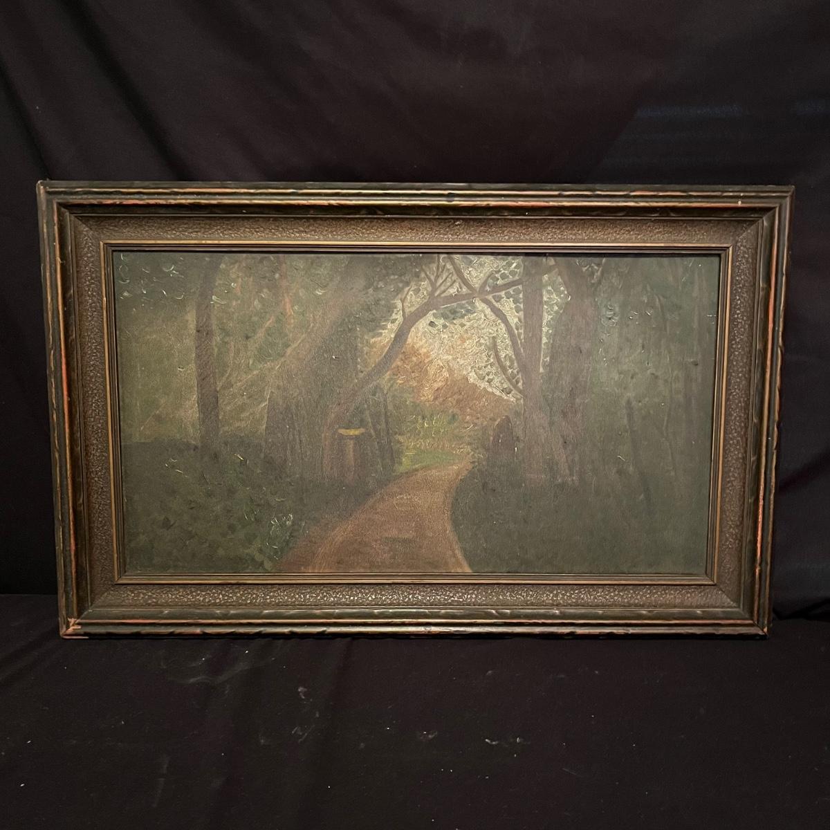 Lot includes a wooden framed landscape print. Frame has some scratches and nicks, see pictures. Frame measures 18.25” x 29.25”.