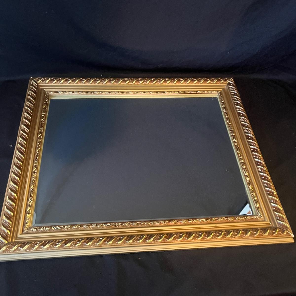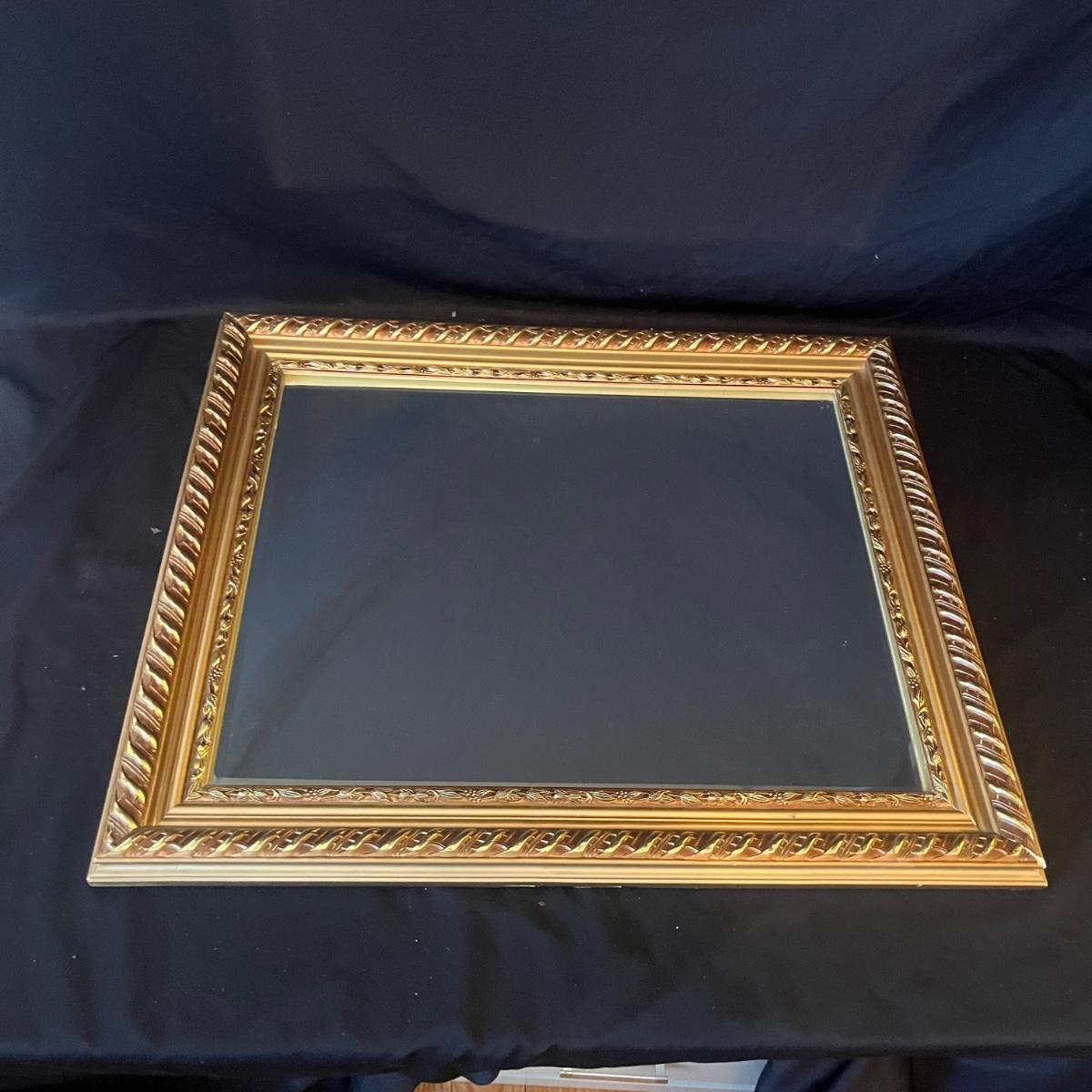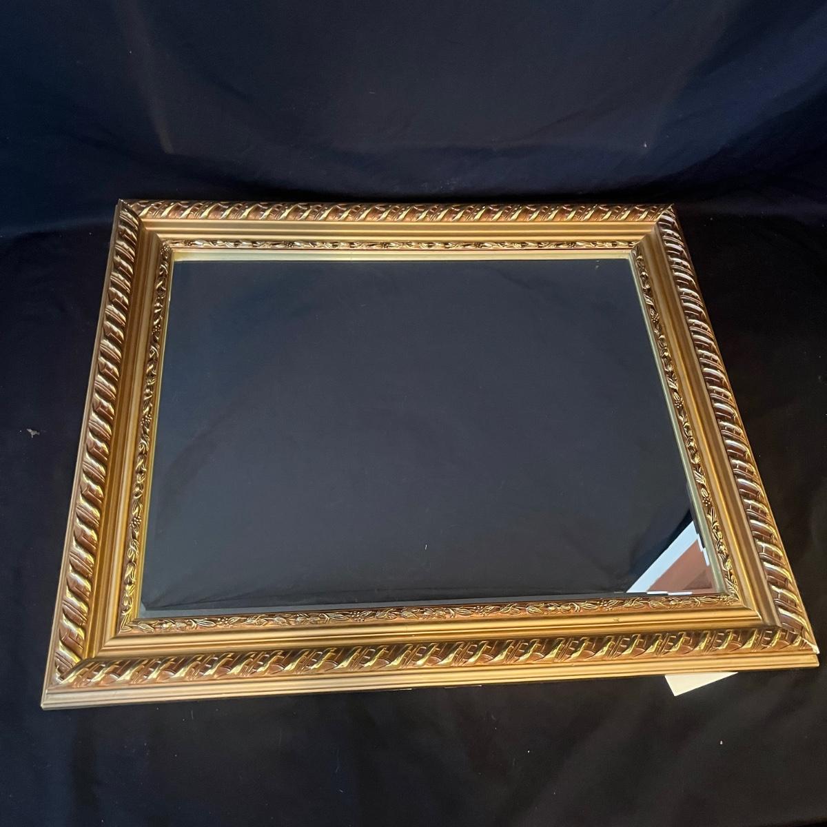 Lot includes a wooden framed mirror that measures 24” x 20”H. Some nicks on corners. See photos for details.