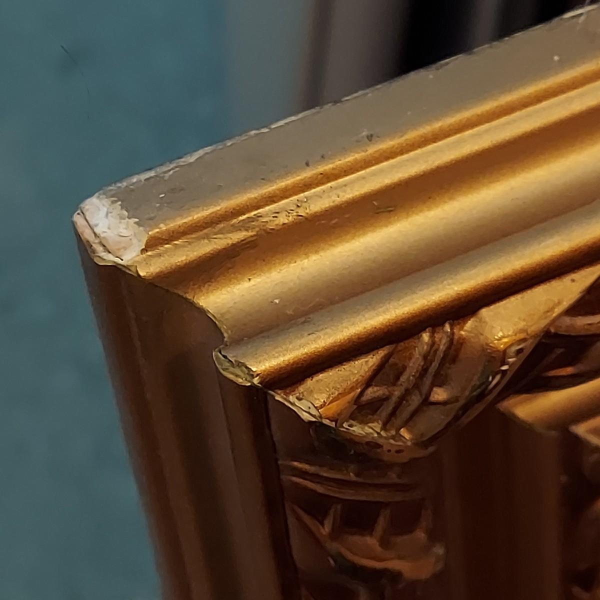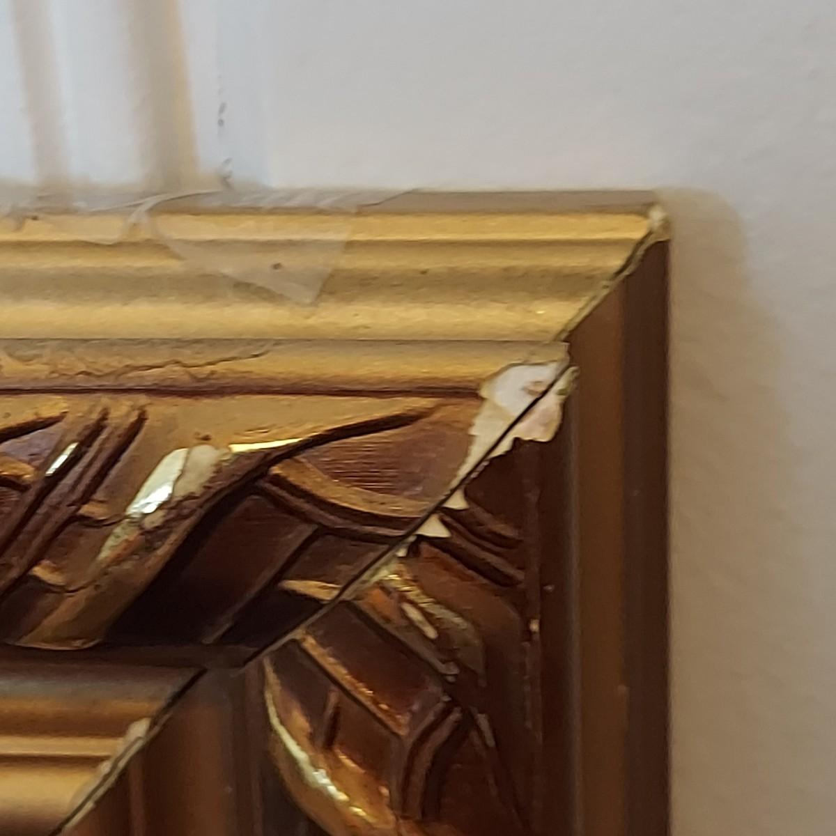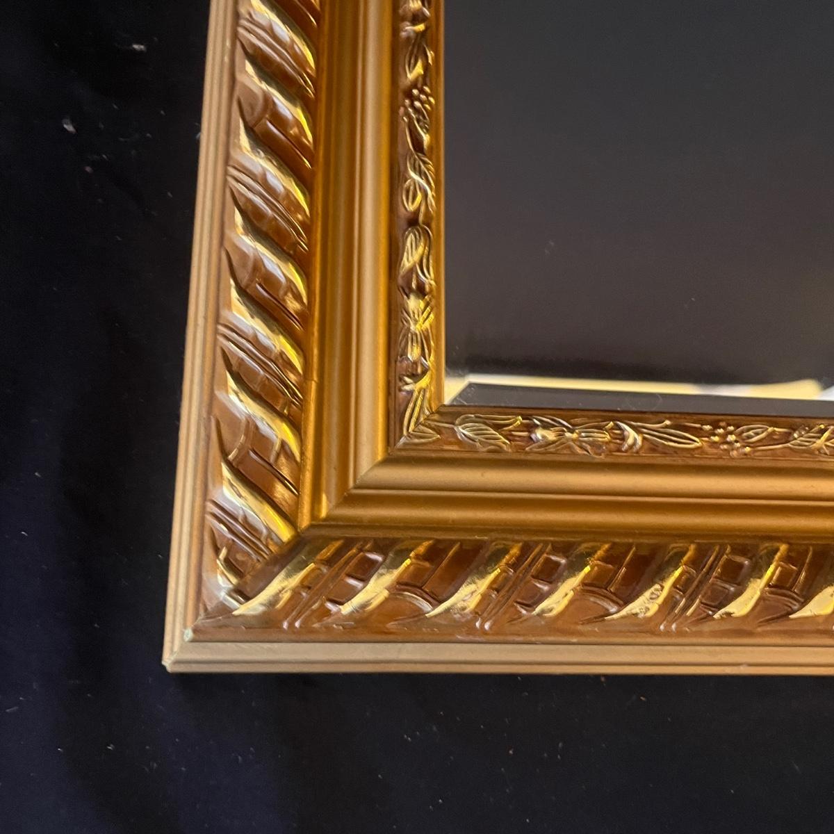 Lot includes a wooden framed mirror that measures 24” x 20”H. Some nicks on corners. See photos for details.
