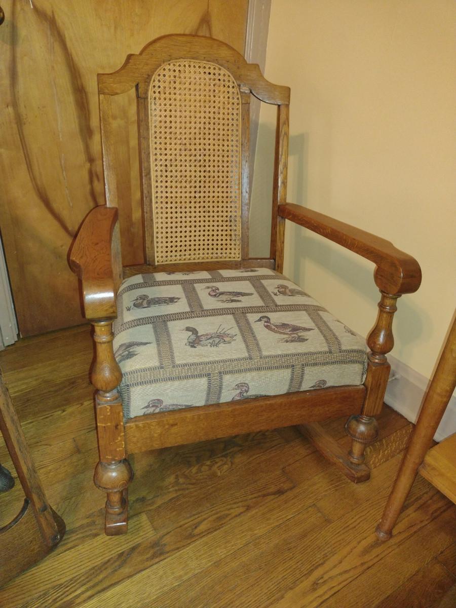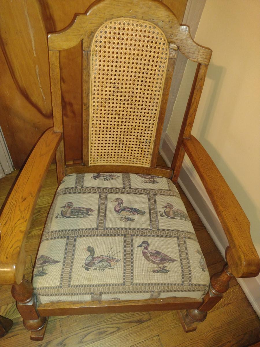 Wooden Framed Upholstered Rocking Chair with Cane Back (K)