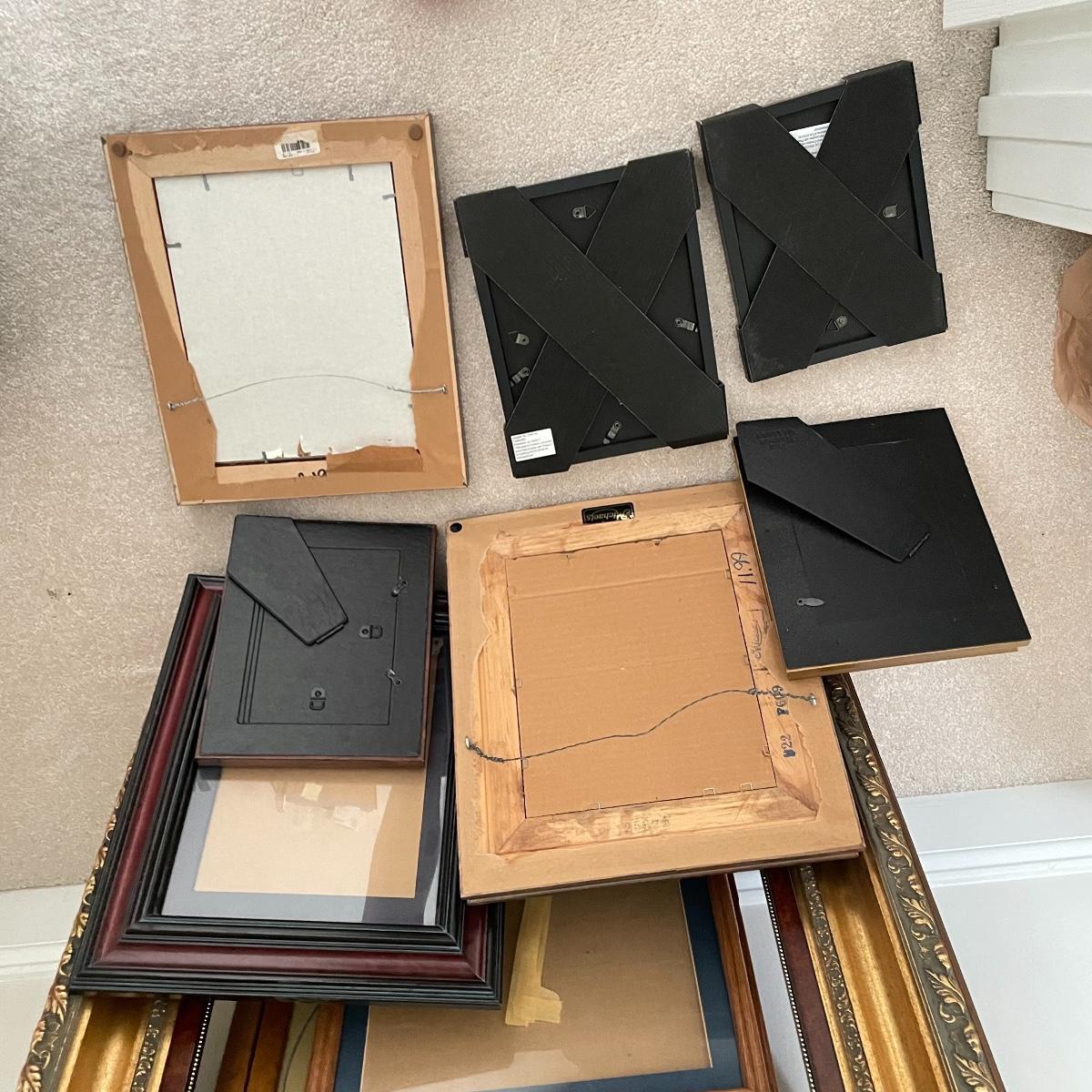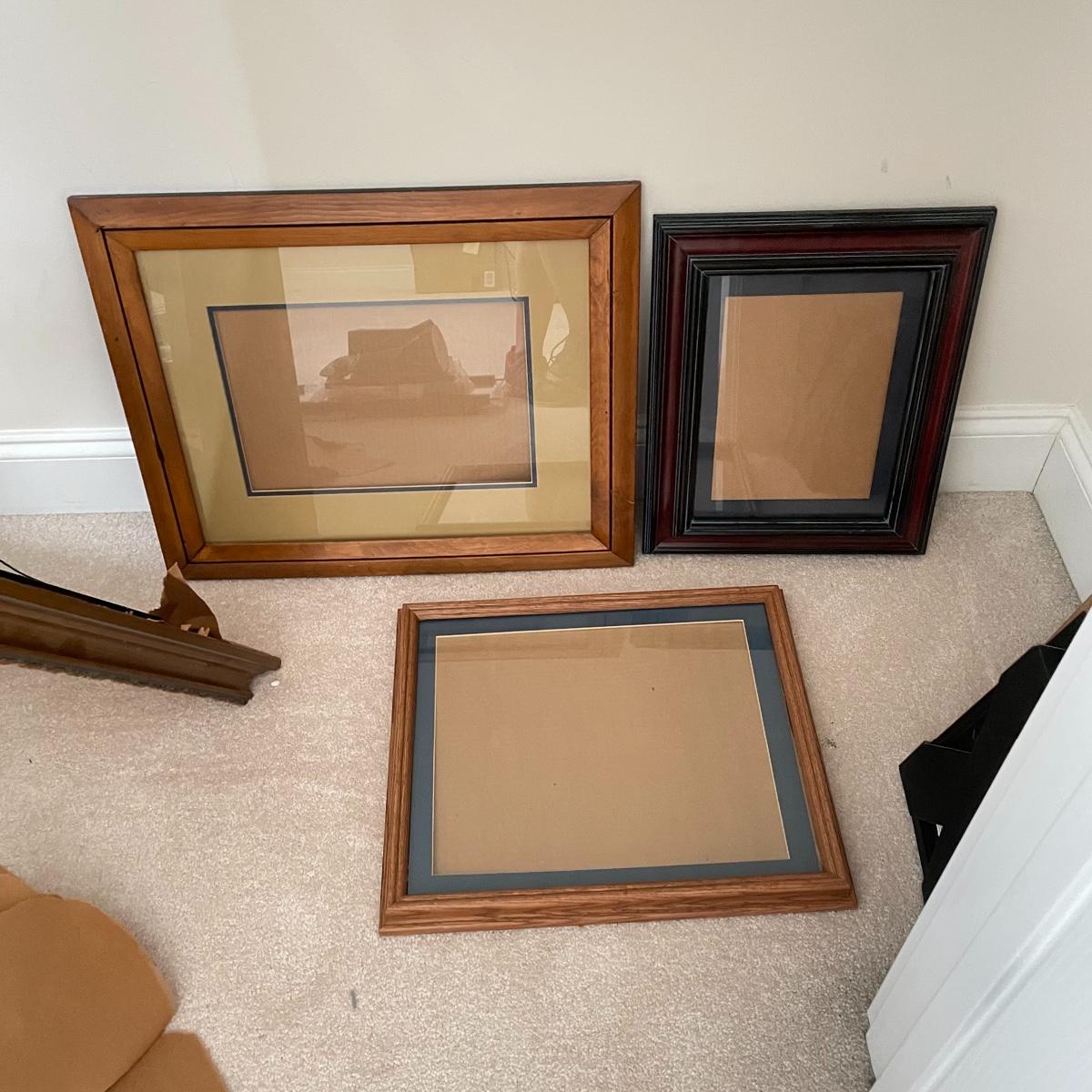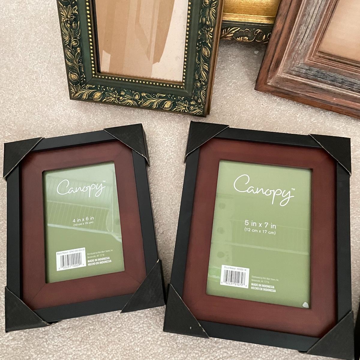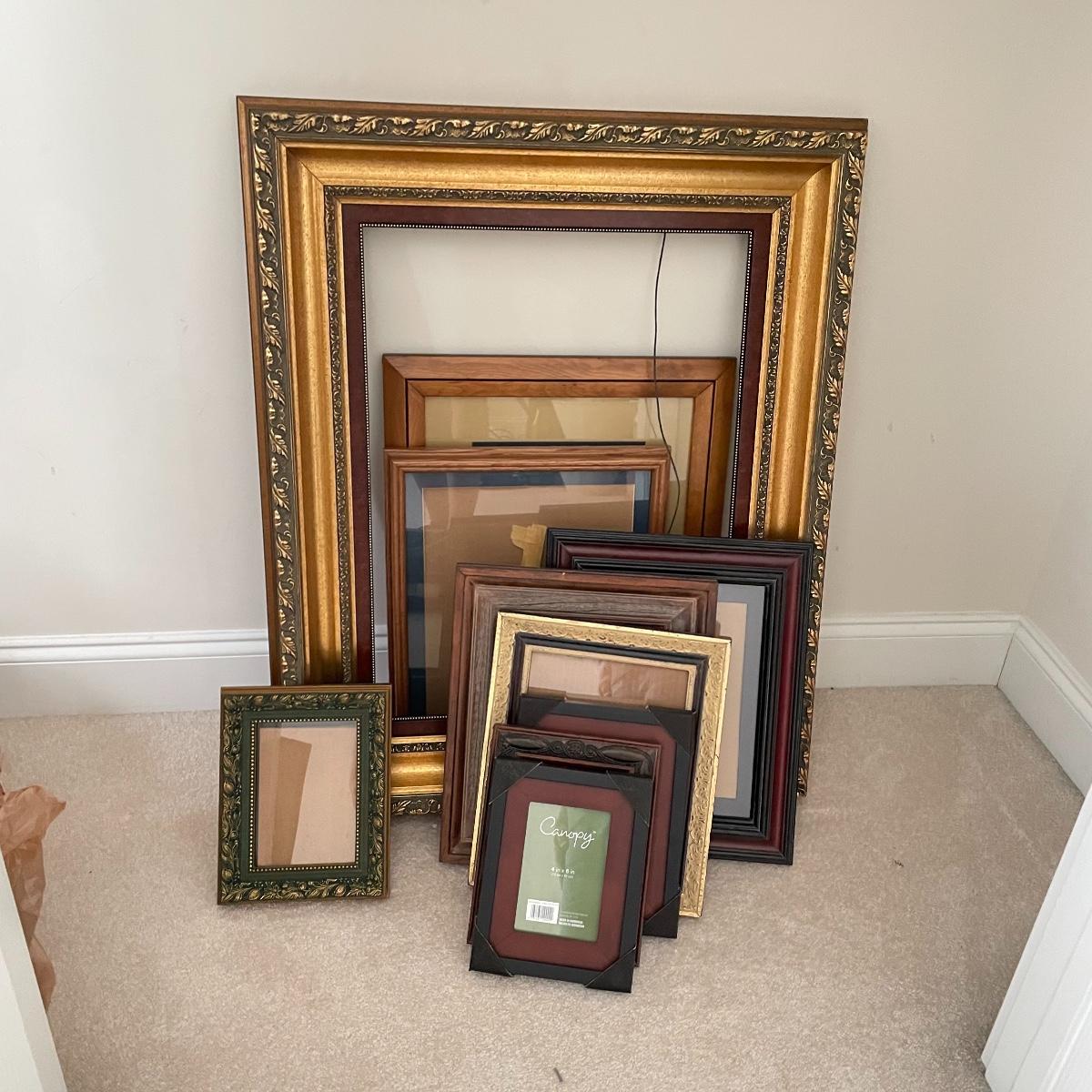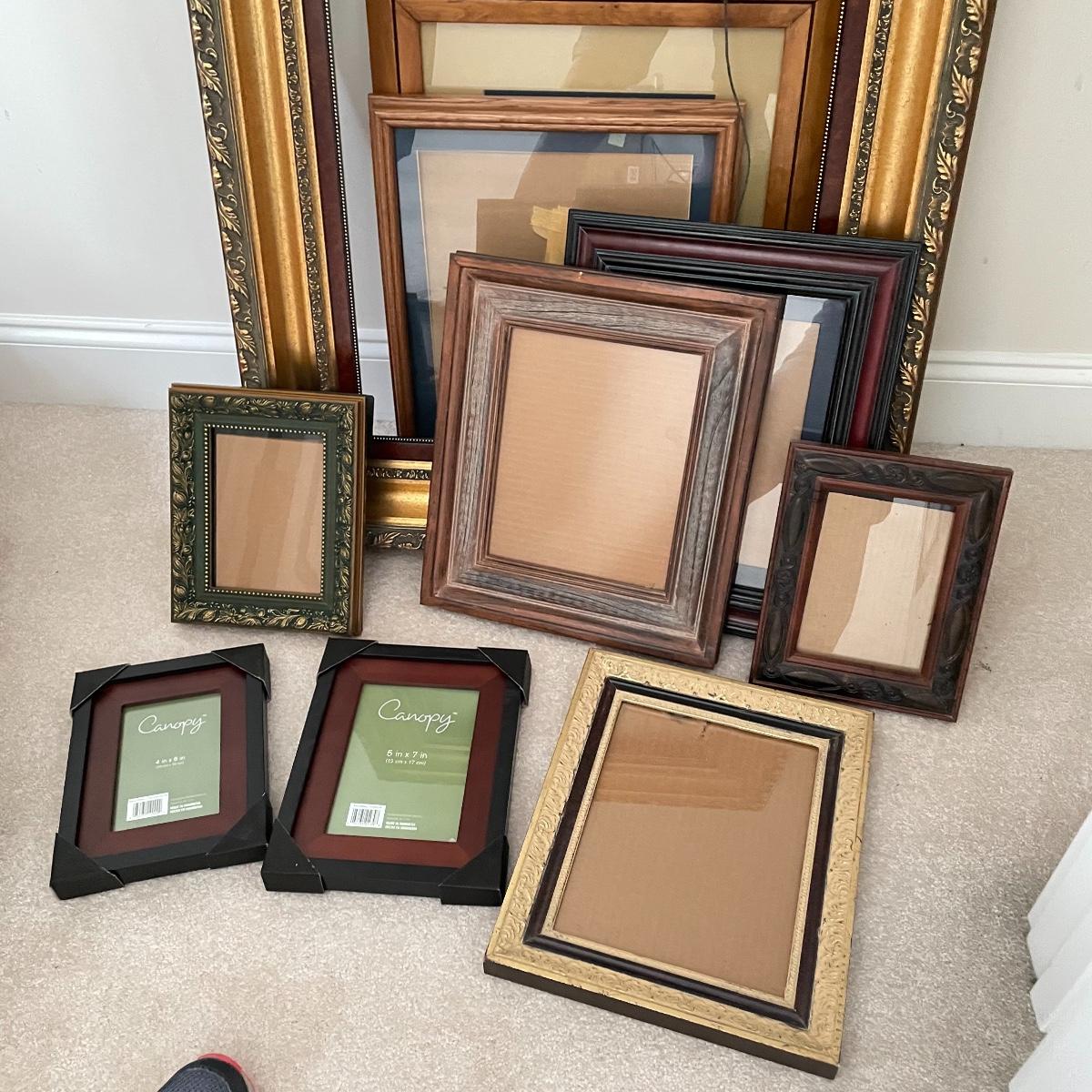 Ten wooden frames ranging from 34” x 27.75” down to 9” x 7” (this one holds the 4” x 6” photo). See images. Local pick up only.