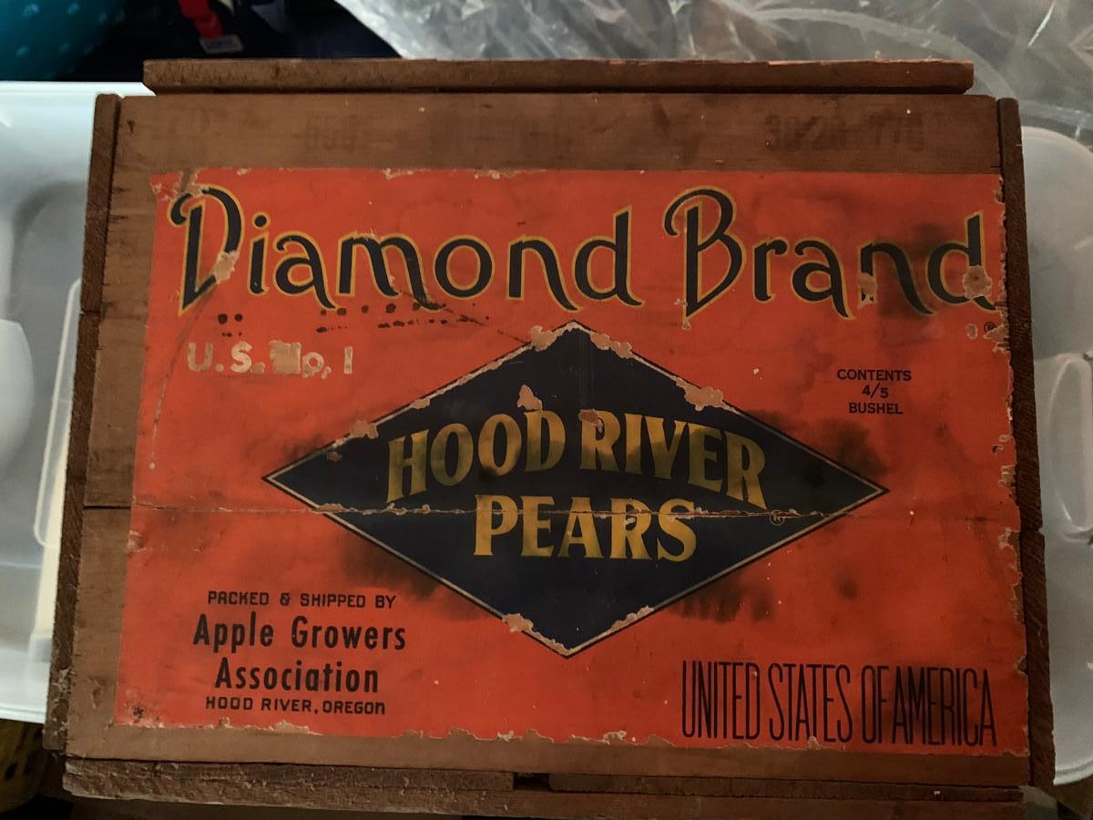 wooden fruit box with label#5 diamond brand hood river pears 2nd same box (6 total listed in this sale listing)