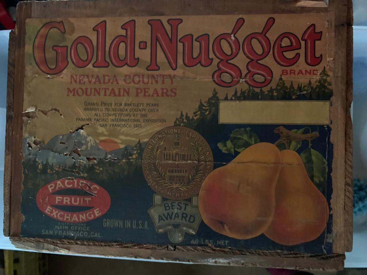 wooden fruit box with label#6 gold nugget pears (6 total listed in this sale listing)