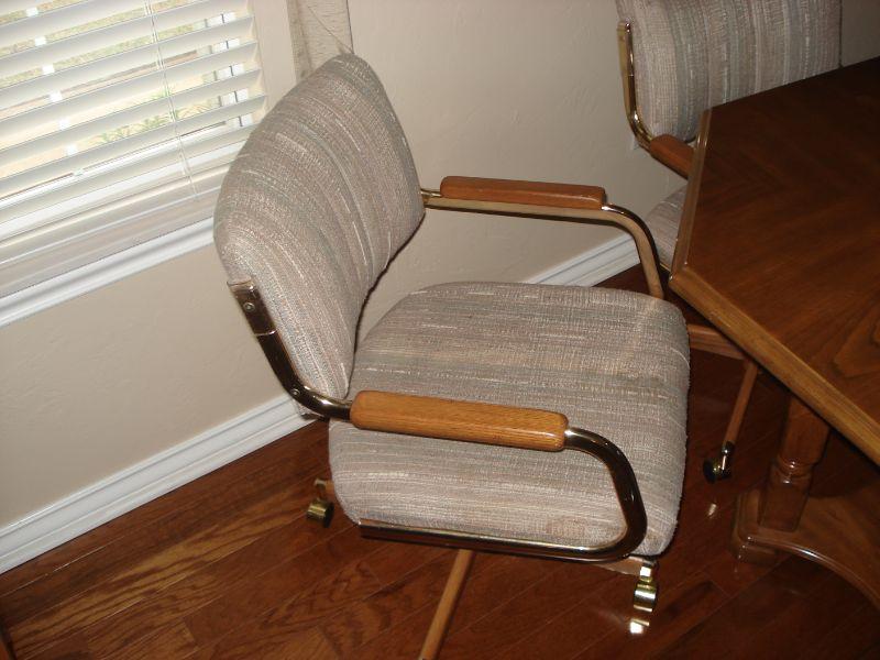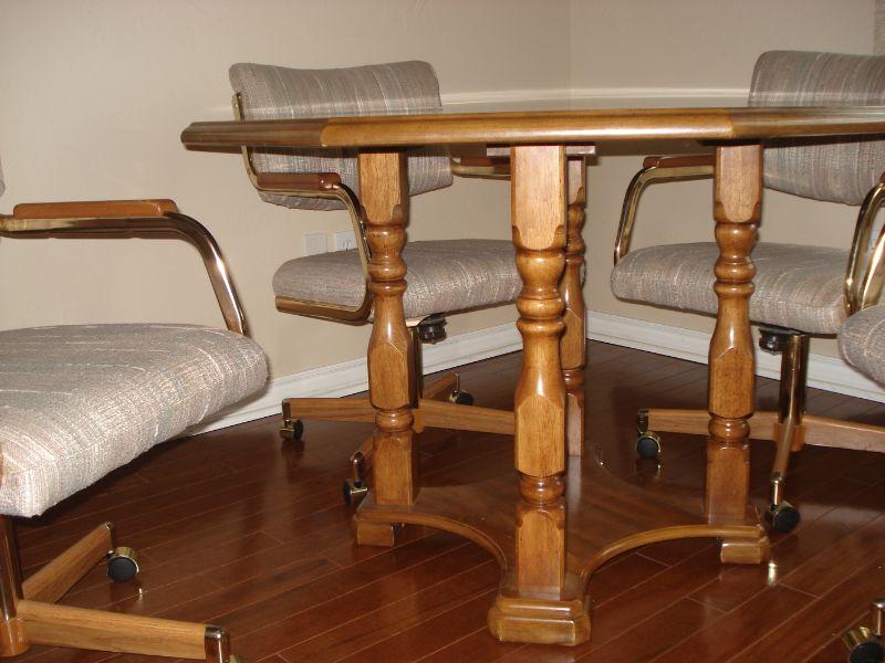 Wooden Game or Kitchen octagonal table with 4 rolling chairs on castors