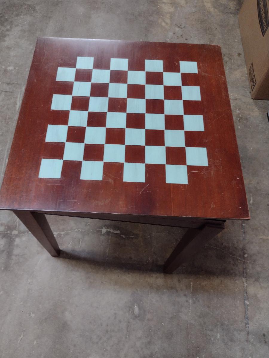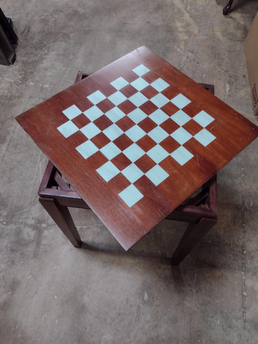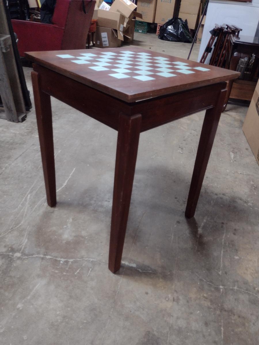 Wooden Game Table with Revolving Top. Approx 21" square x 26 1/2" tall.