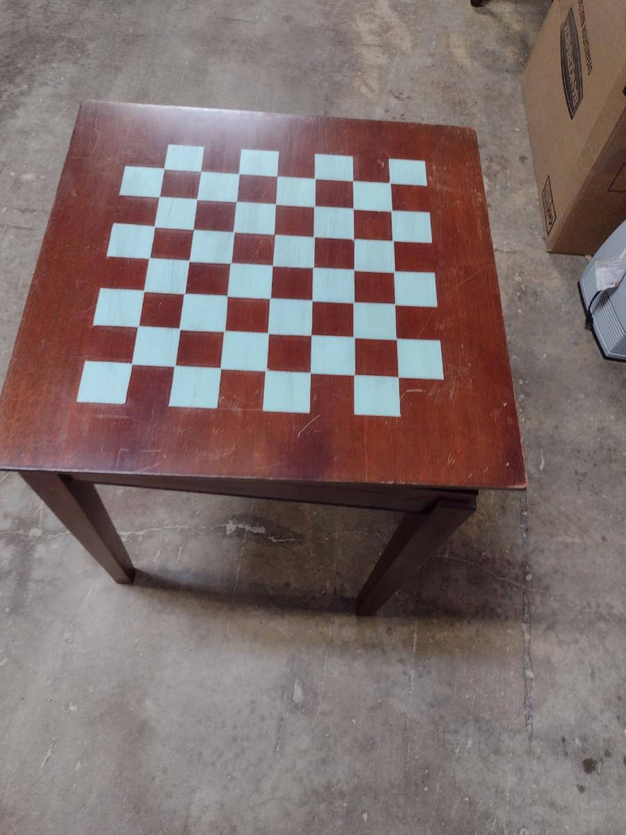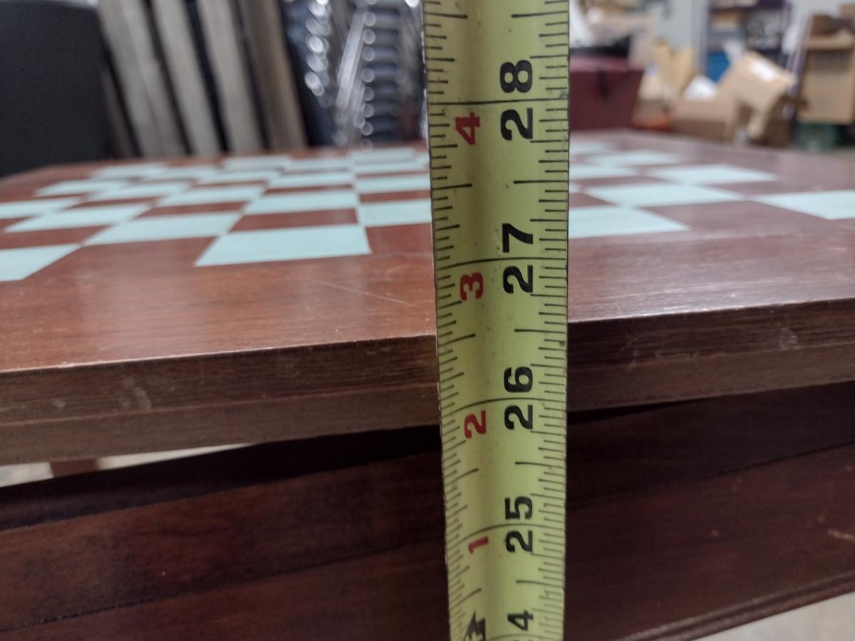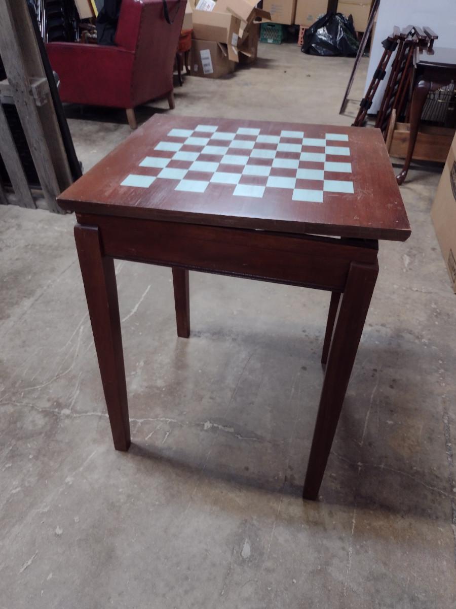 Wooden Game Table with Revolving Top. Approx 21" square x 26 1/2" tall.