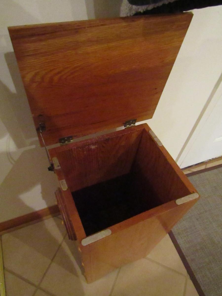 Wooden Garbage Bin- Approx 14" x 13" x 27 1/4" Tall