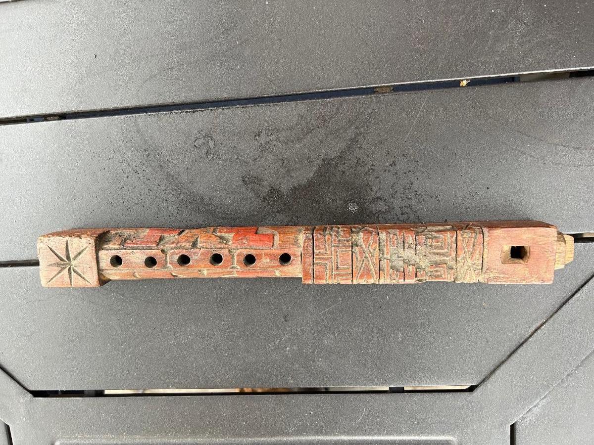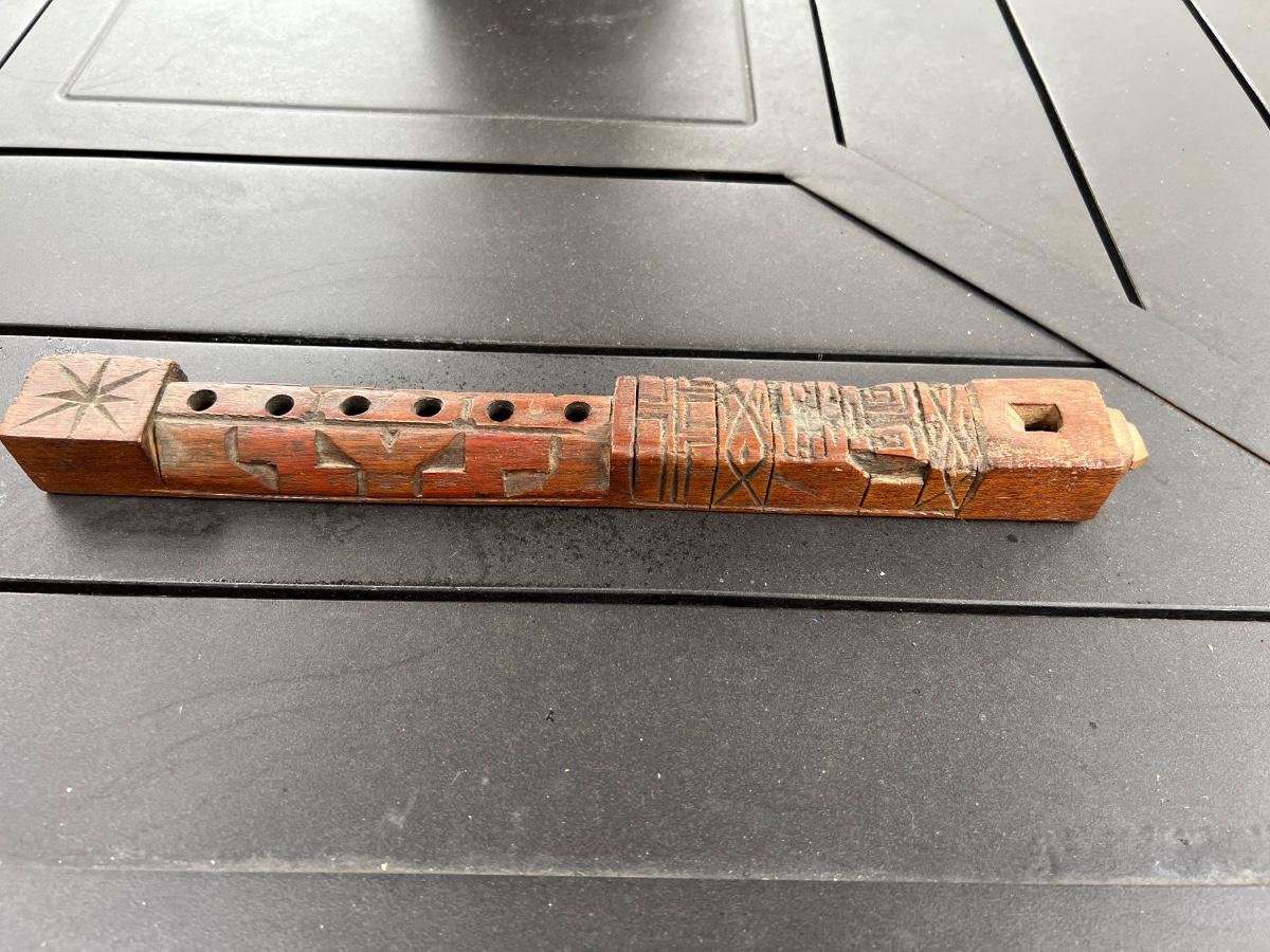 Wooden Hand Carved Flute Measures 13 inches long and 2 inches wide.