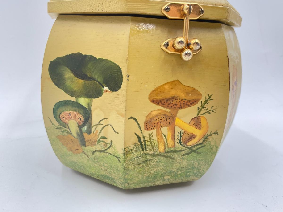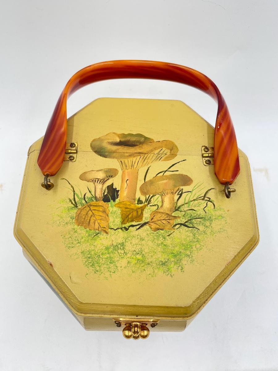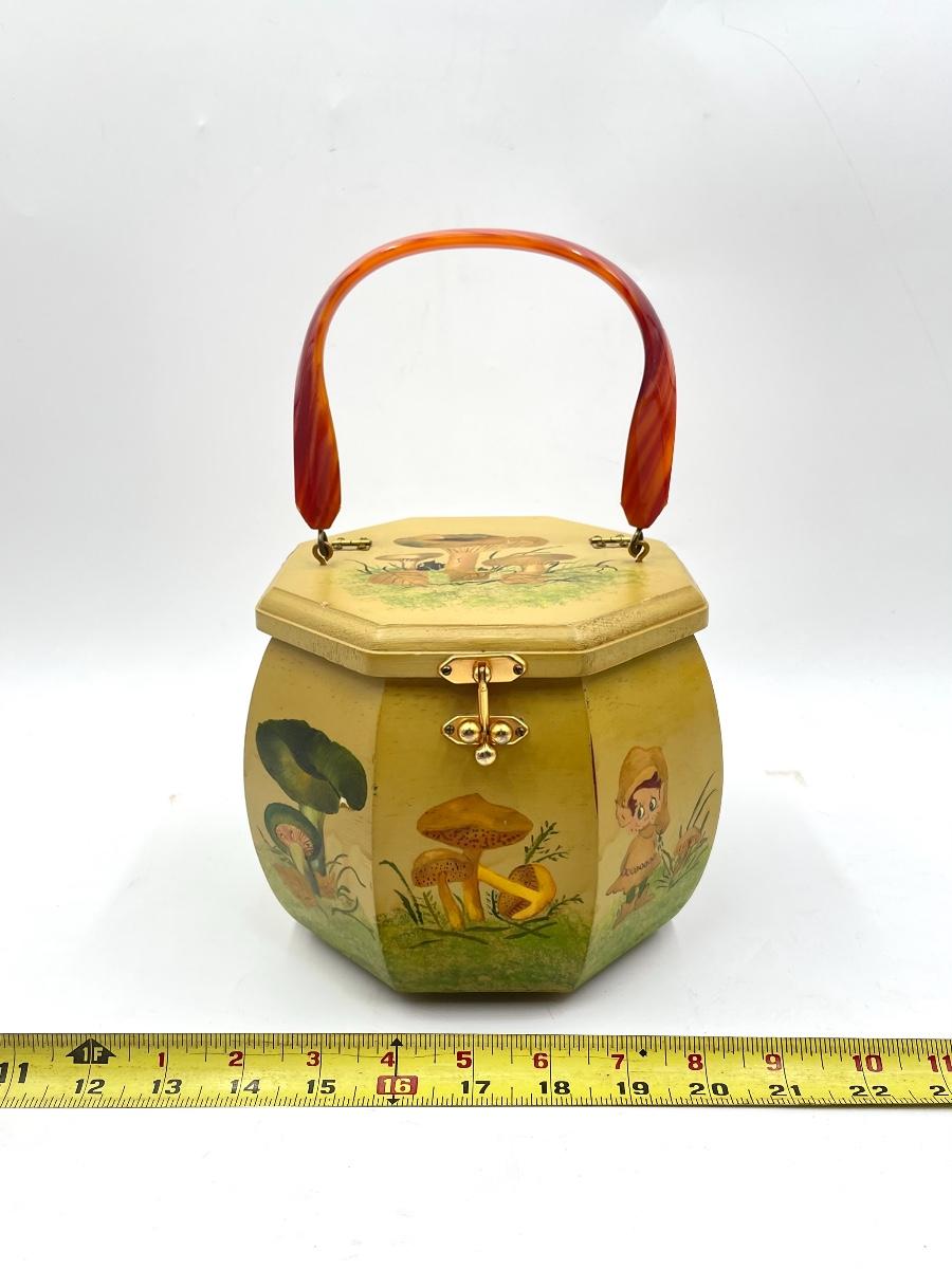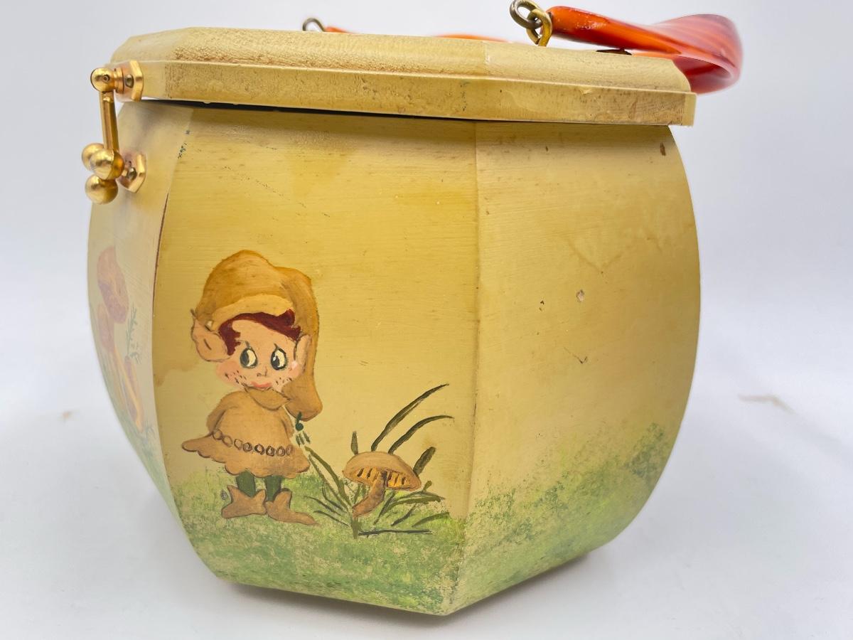WOODEN HAND PAINTED MUSHROOM & ELF PURSE